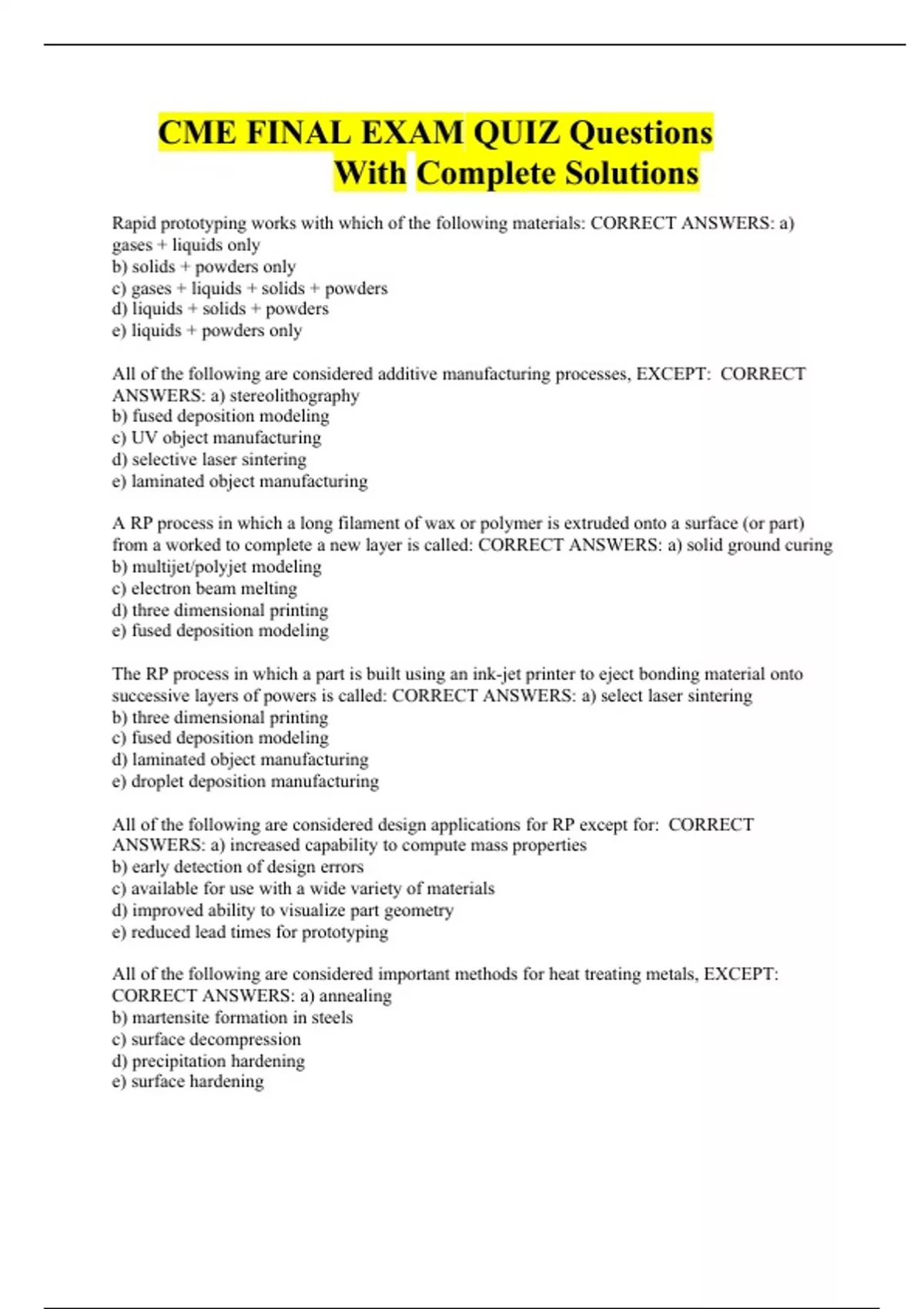 CME FINAL EXAM QUIZ Questions With Complete Solutions 2023/24