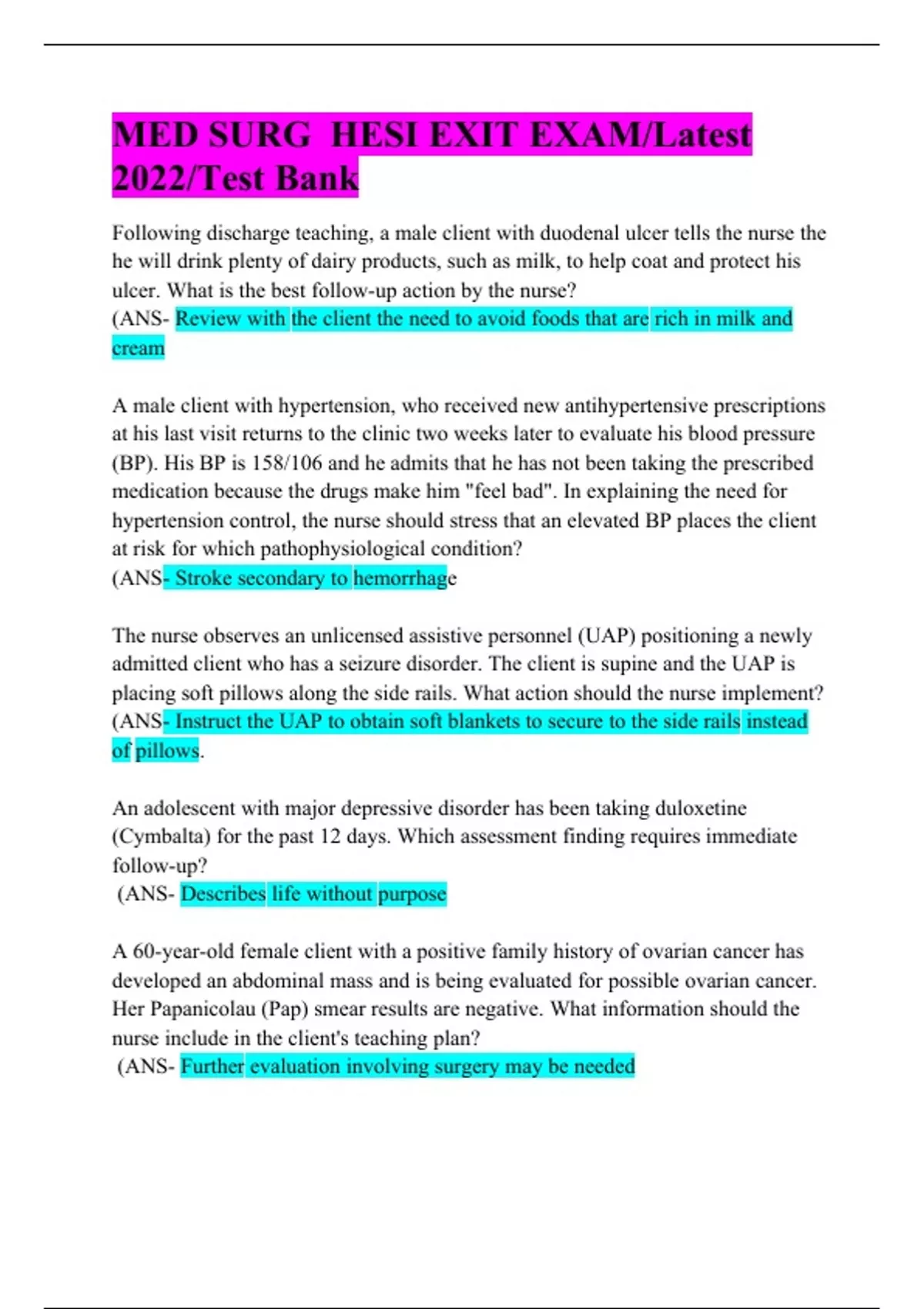 - MED SURG HESI EXIT