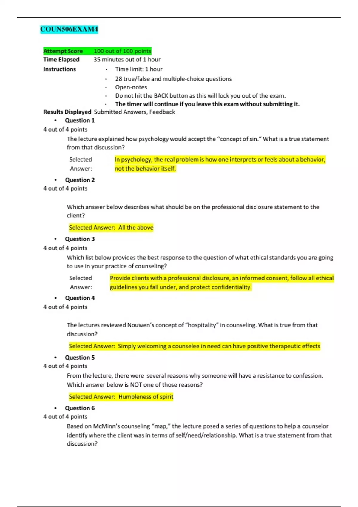 Lecture notes of 6 pages for the course Nursing at Nursing (COUN506 EXAM4.)