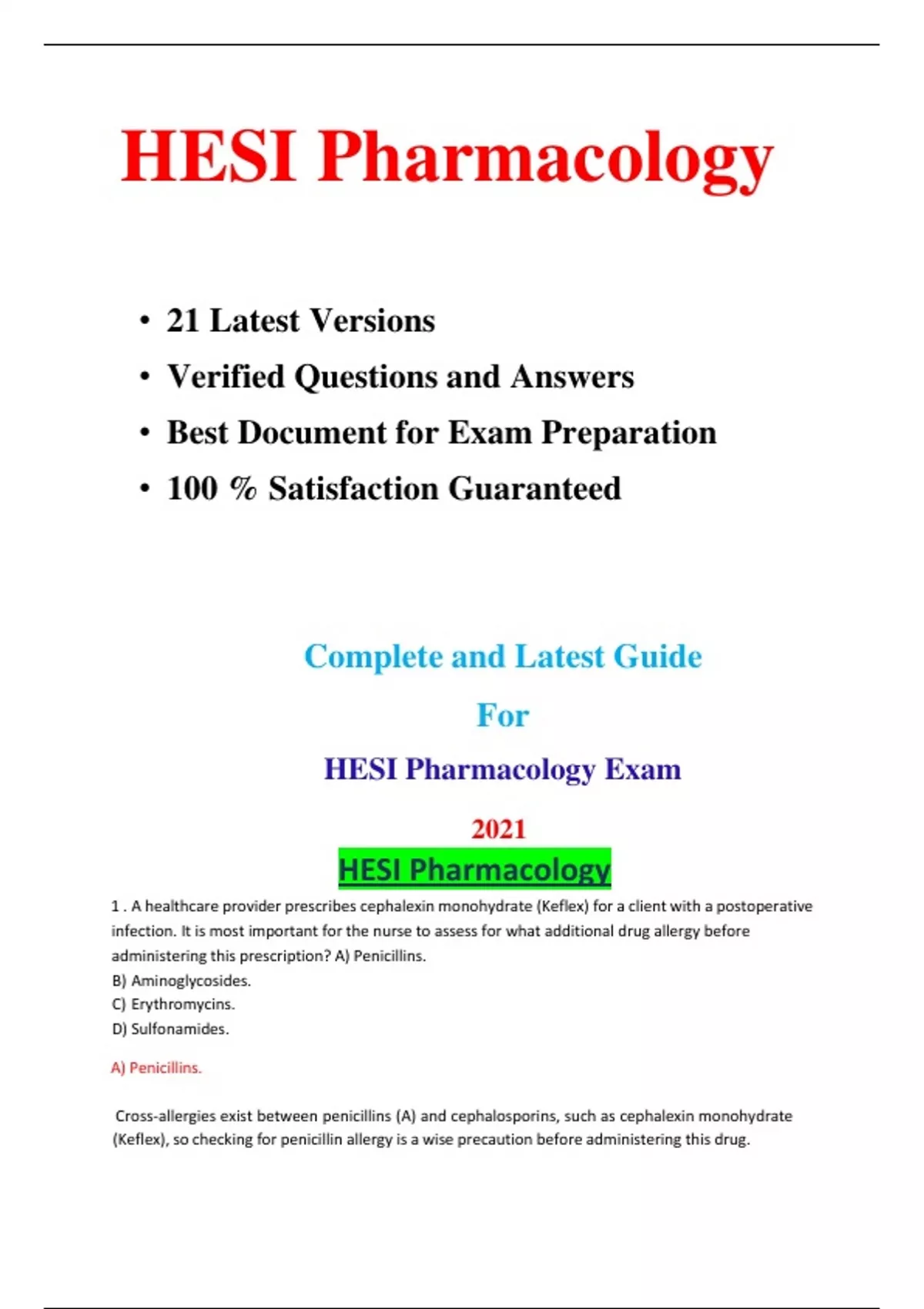 HESI Pharmacology 21 Latest Versions Verified Questions and Answers