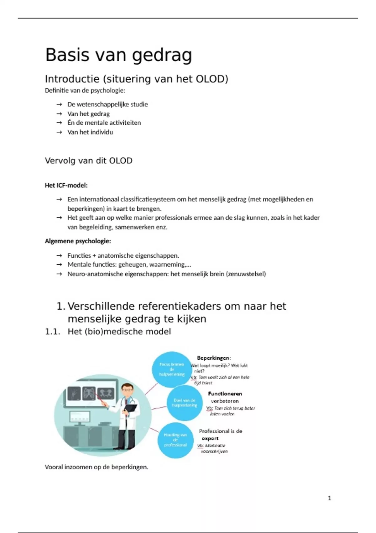 Samenvatting van 12 pagina's voor het vak Basis van gedrag aan de HoWest (samenvatting ICF)