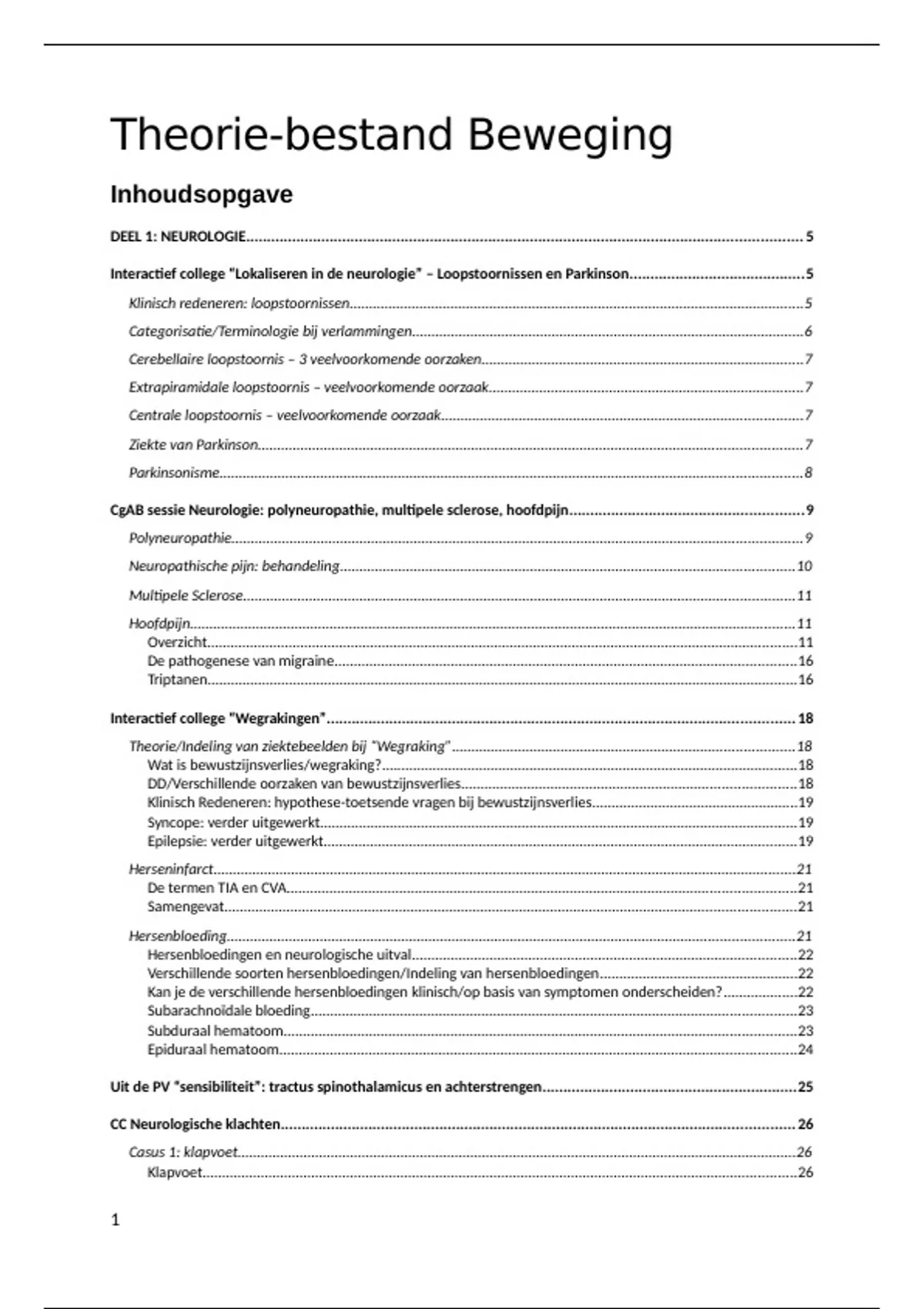 Uit de PV “sensibiliteit”: tractus spinothalamicus en achterstrengen.............................................................25
