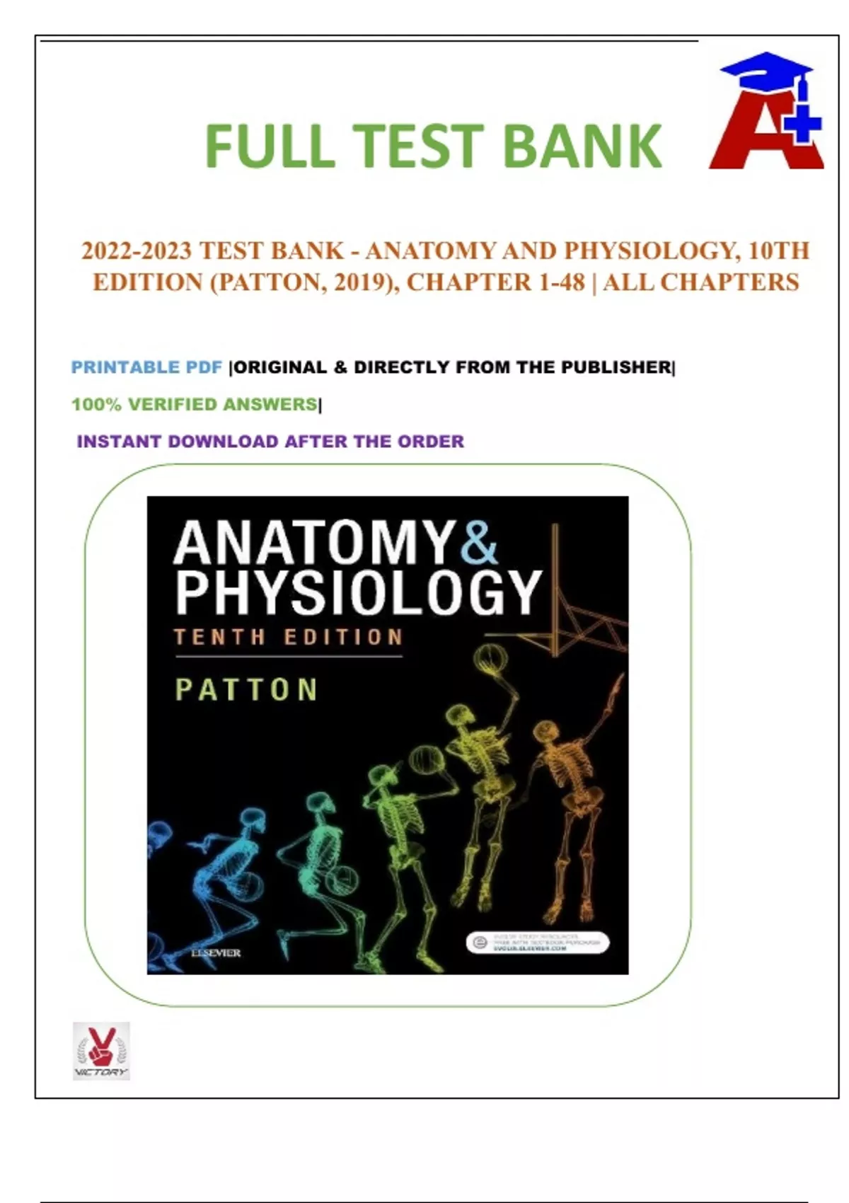 TEST BANK - ANATOMY AND PHYSIOLOGY, 10TH EDITION (PATTON, 2019), CHAPTER 1-48 | ALL CHAPTERS
