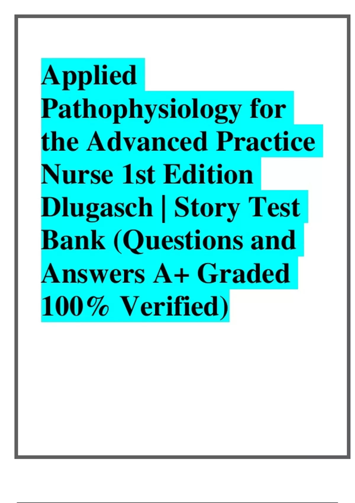Applied Pathophysiology for the Advanced Practice Nurse 1st Edition Dlugasch | Story Test Bank (Questions and Answers A+ Graded 100% Verified)