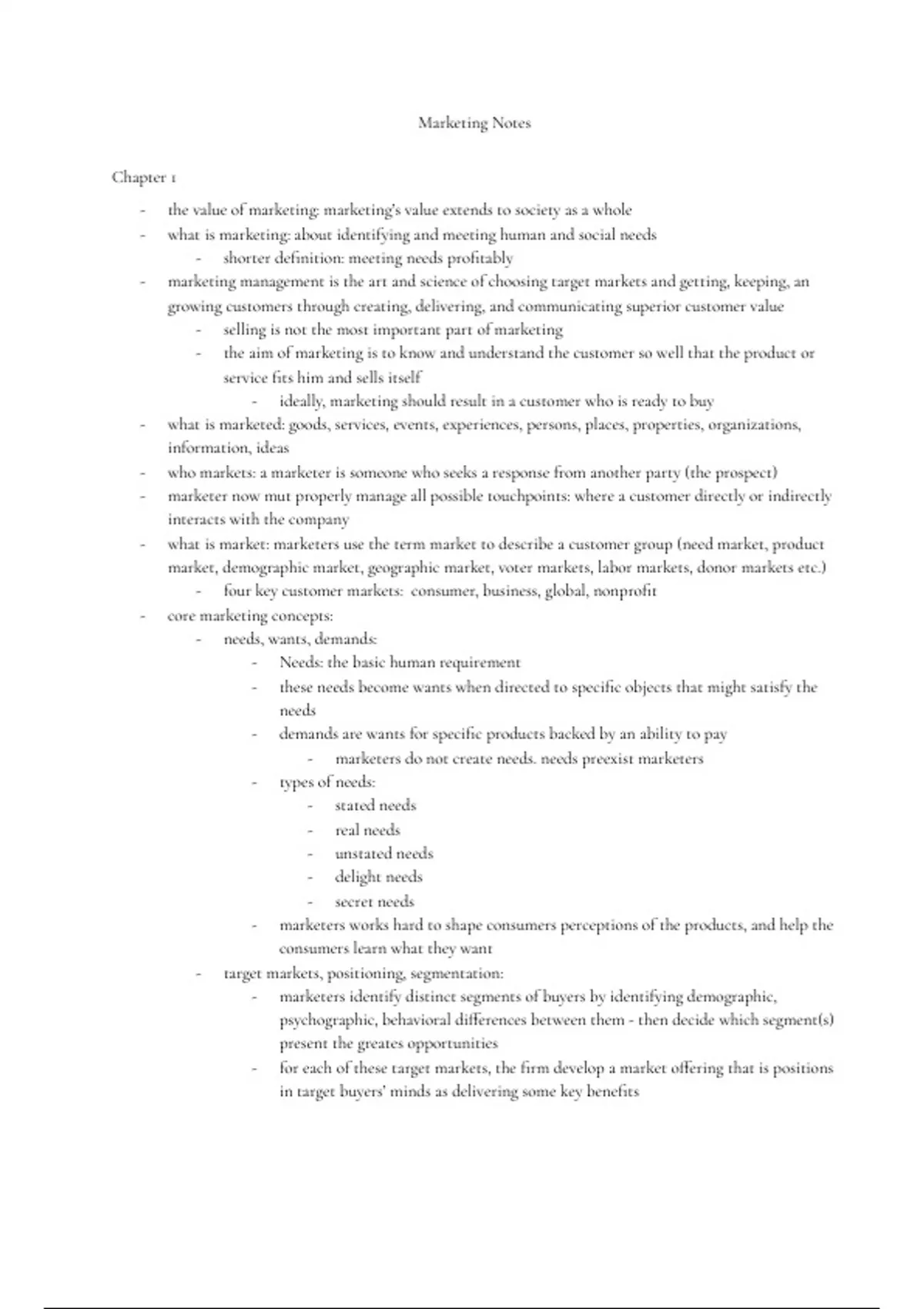 Marketing Notes