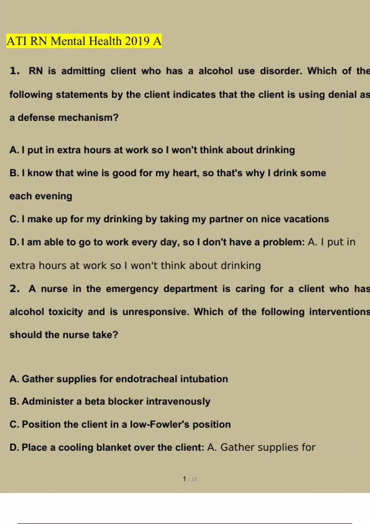 ATI RN MENTAL HEALTH PROCTORED 2019 - Revision Questions & Answers LATEST UPDATE
