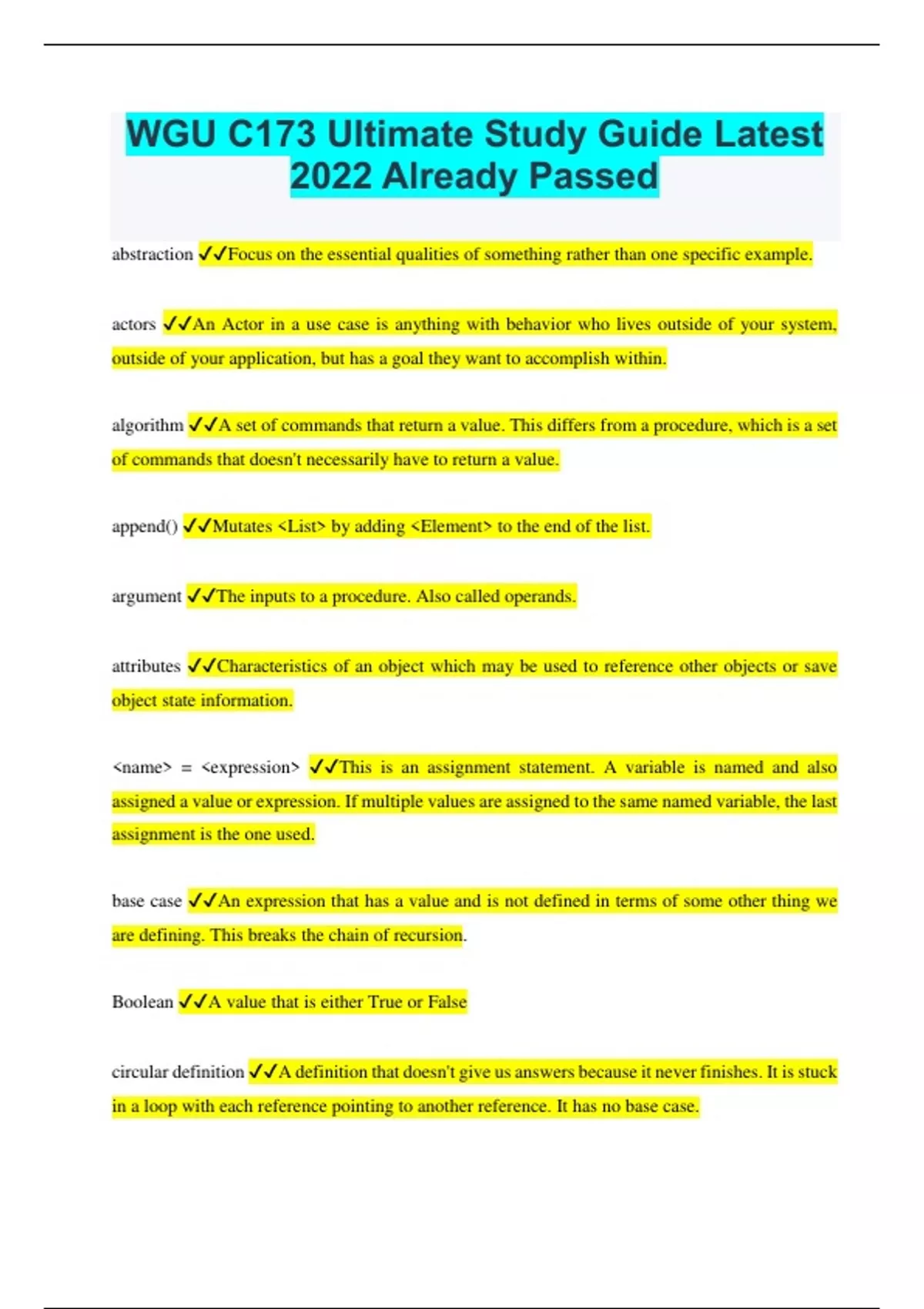 WGU C173 Ultimate Study Guide Latest 2022 Already Passed