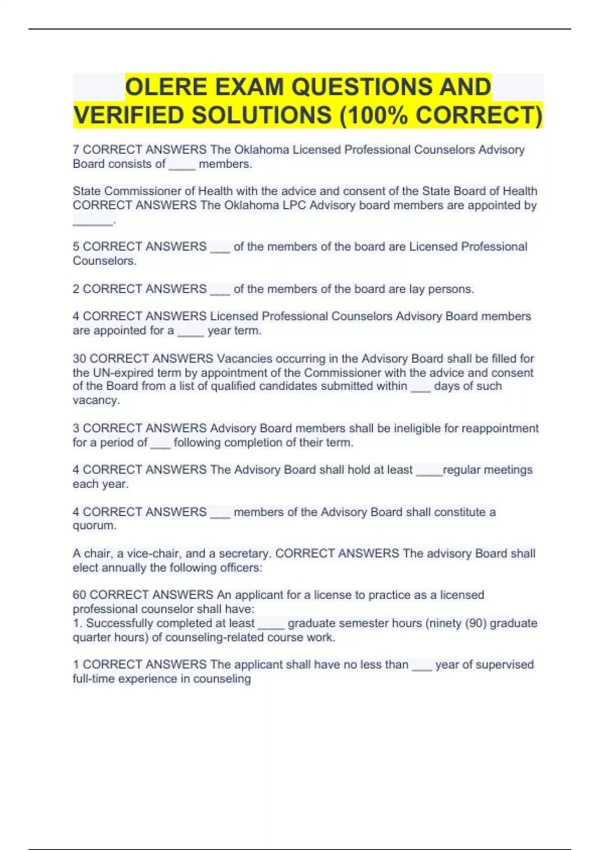 OLERE EXAM QUESTIONS AND VERIFIED SOLUTIONS (100% CORRECT)