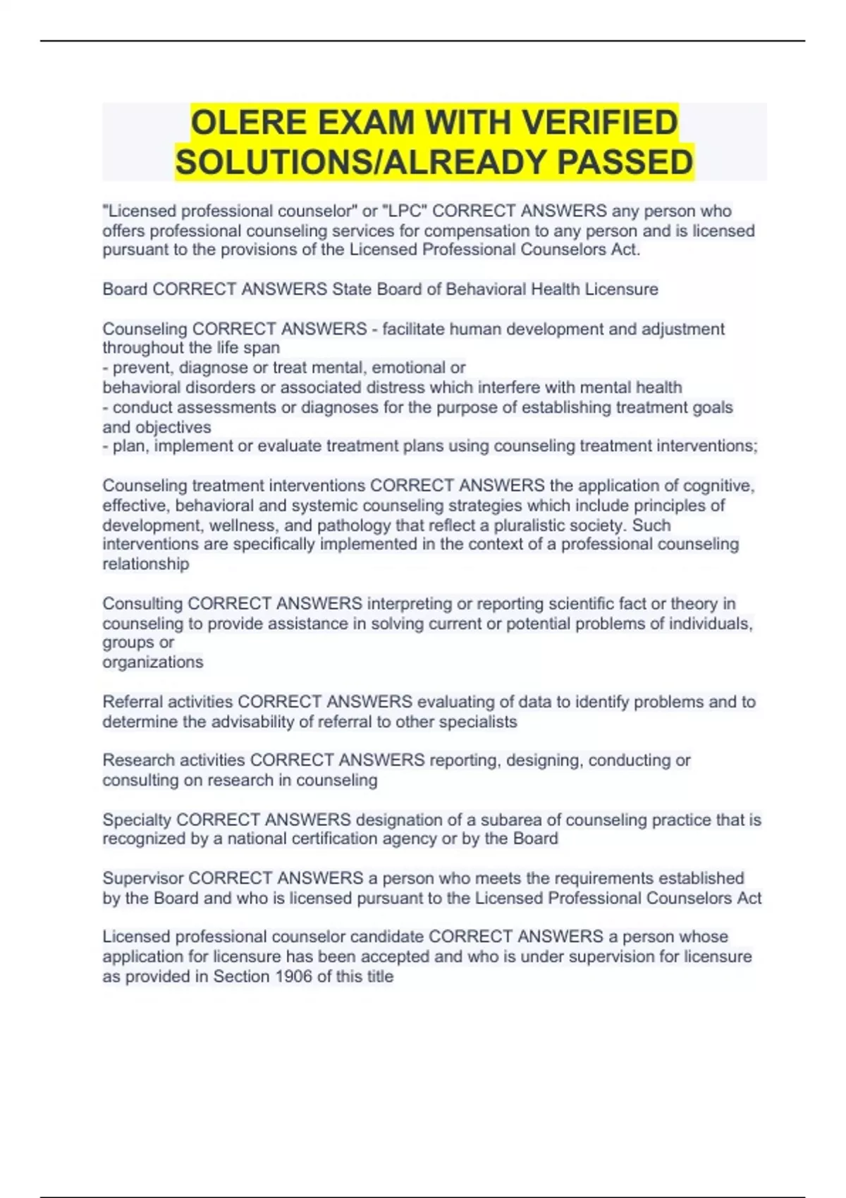 OLERE EXAM WITH VERIFIED SOLUTIONS/ALREADY PASSED