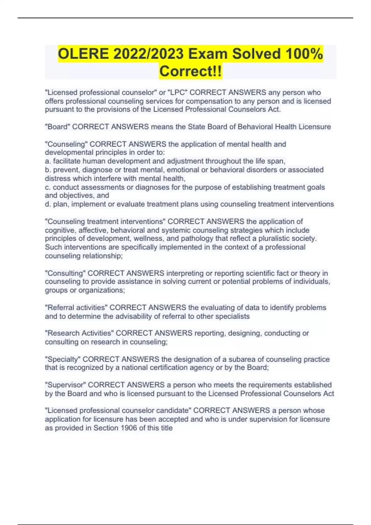 OLERE 2022/2023 Exam Solved 100% Correct!!