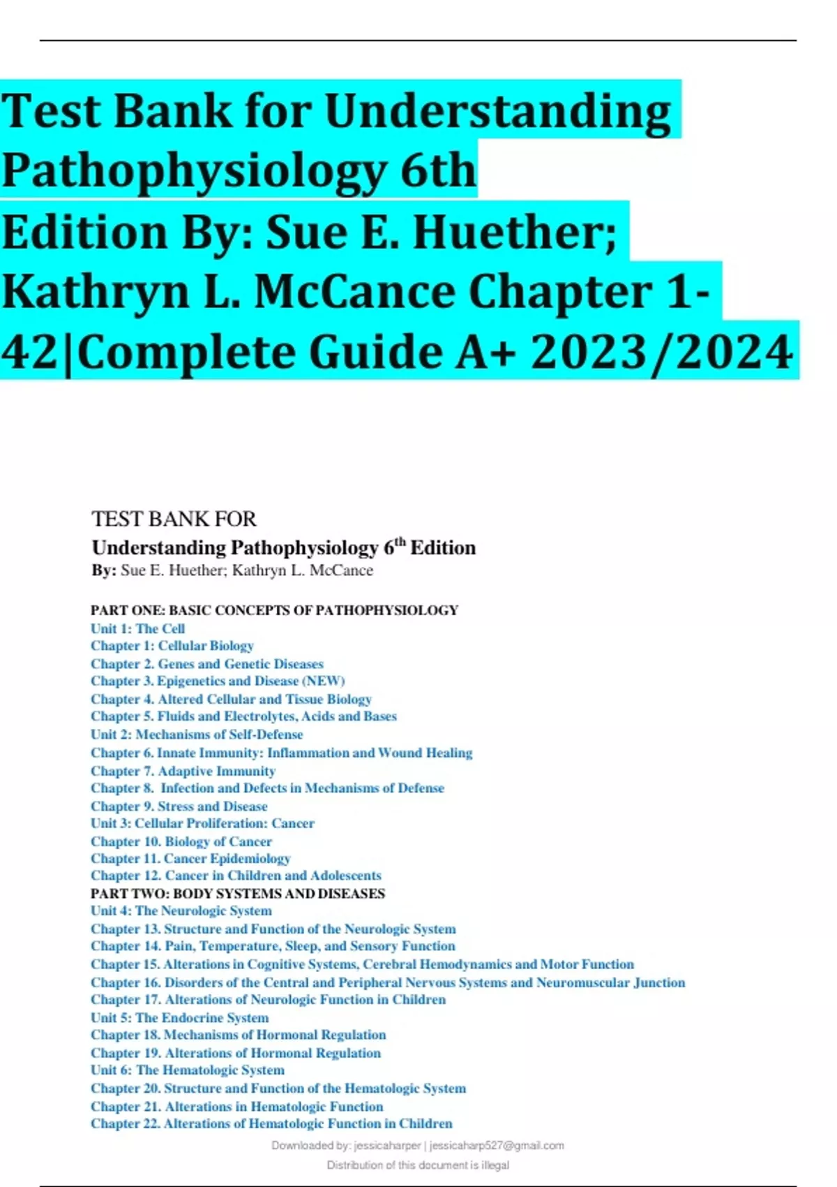 Test Bank for Understanding Pathophysiology 6th Edition By: Sue E. Huether; Kathryn L. McCance Chapter 1- 42|Complete Guide A+ 2023/2024