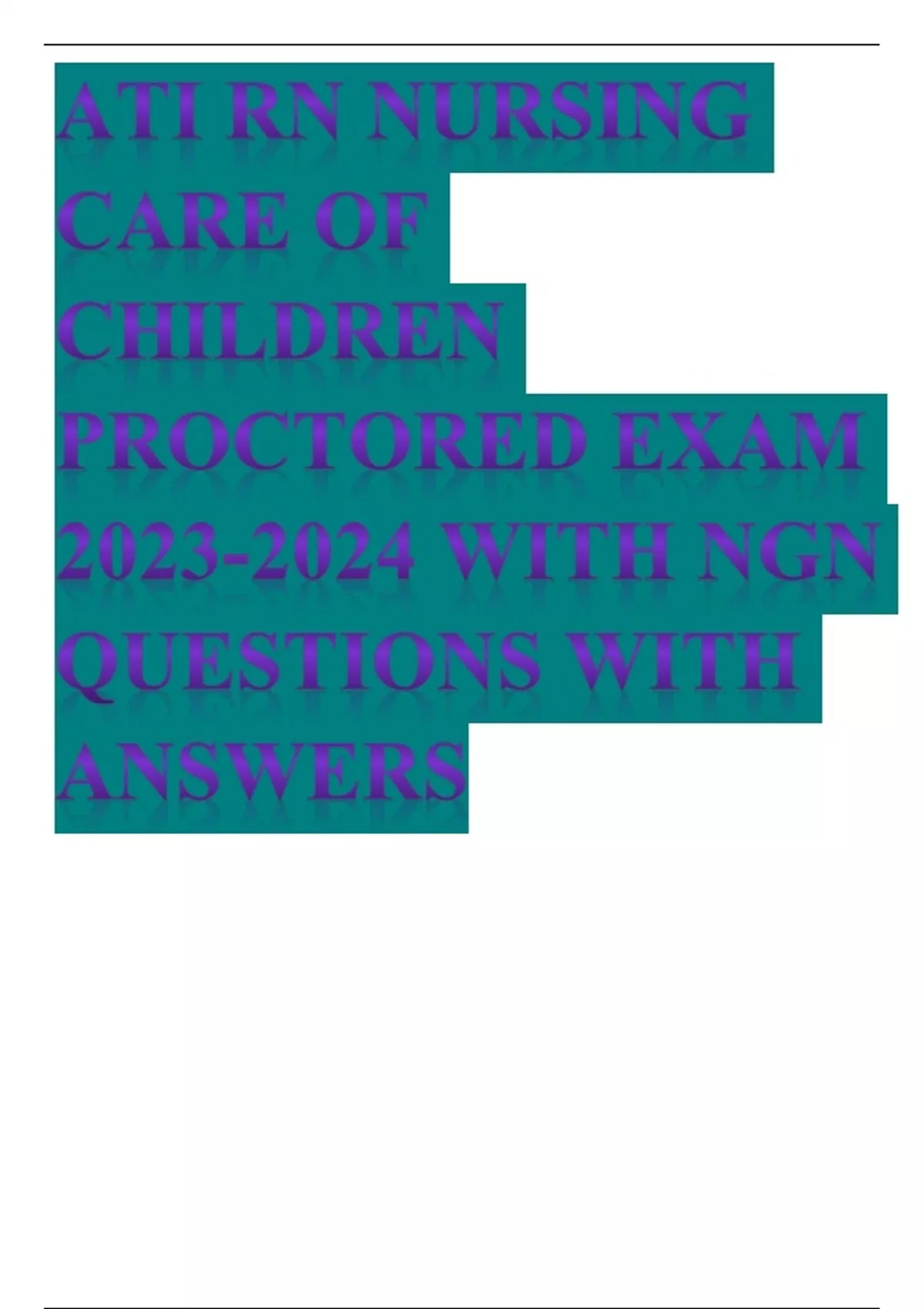 ATI RN NURSING CARE OF CHILDREN PROCTORED EXAM WITH NGN QUESTIONS WITH ANSWERS LATEST