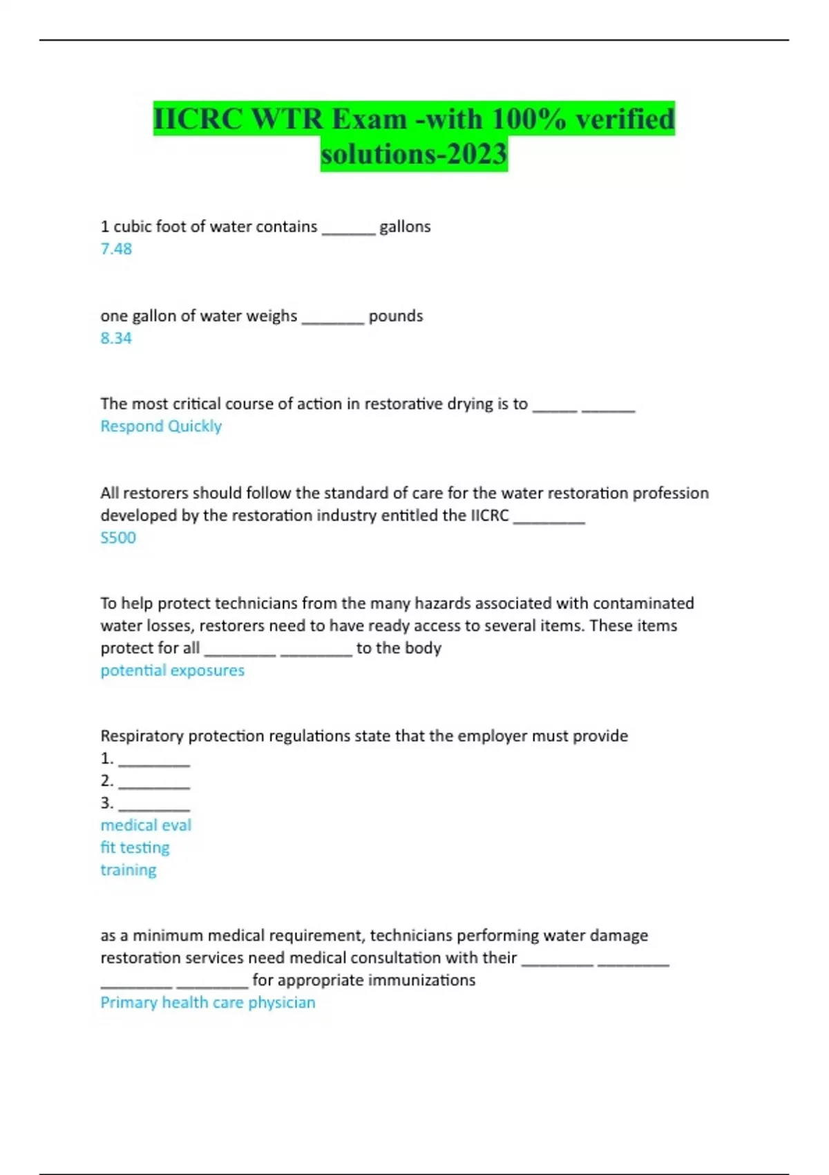 IICRC WTR Exam -with 100% verified solutions-2023