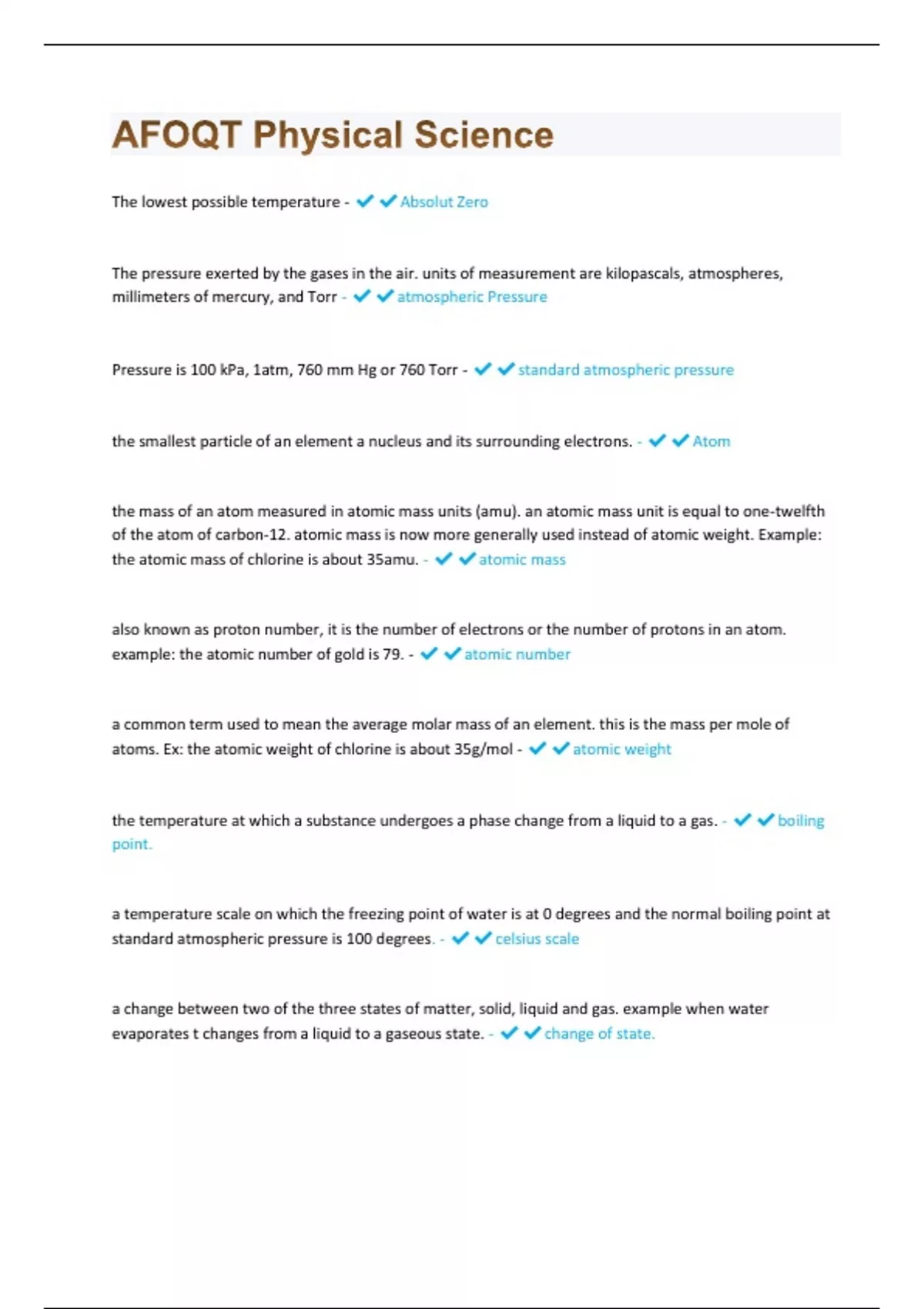 AFOQT Physical Science Questions With 100% Correct Answers.