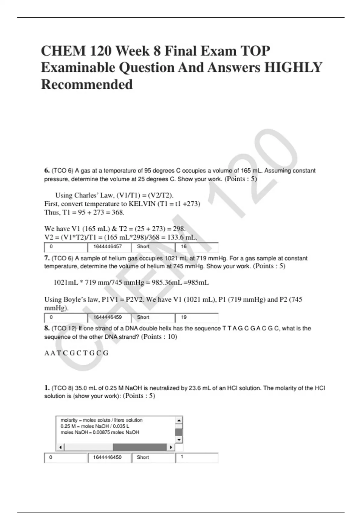 CHEM 120 Week 8 Final Exam TOP Examinable Question And Answers HIGHLY Recommended