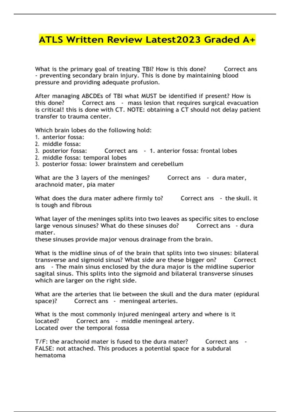 ATLS Written Review ATLS Written Review Latest2023 Graded A+