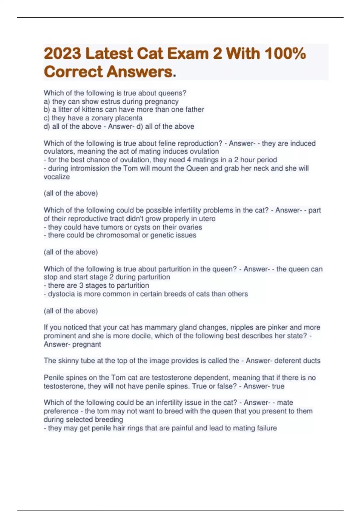 cat exam 2 with correct answers