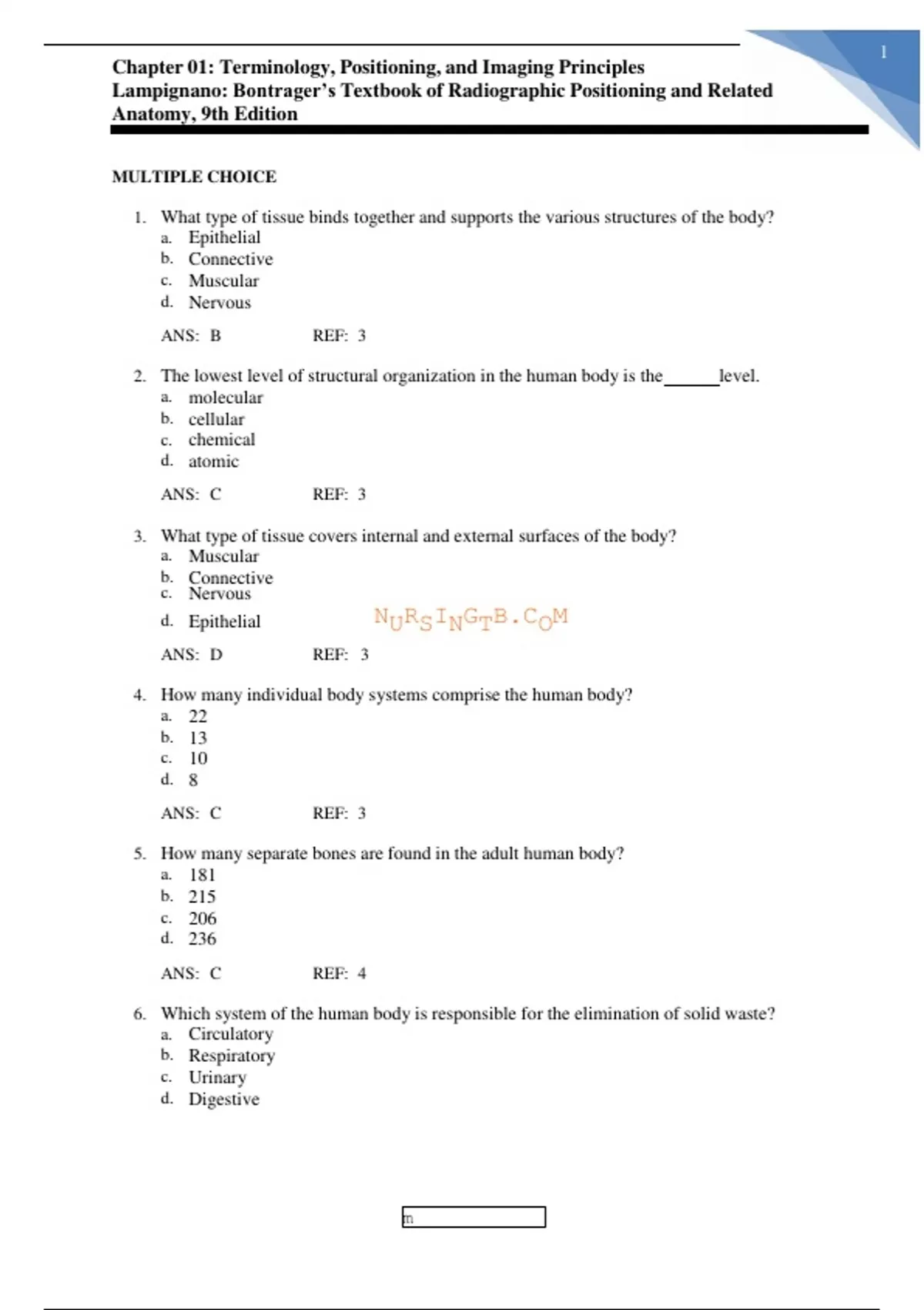 Test Bank for Bontragers Textbook of Radiographic Positioning and Related Anatomy 10th Edition by Lampignano/Test Bank for Bontragers Textbook of Radiographic Positioning and Related Anatomy 10th Edition by Lampignano/Test Bank for Bontragers Textbook of Radiographic Positioning and Related Anatomy 10th Edition by Lampignano