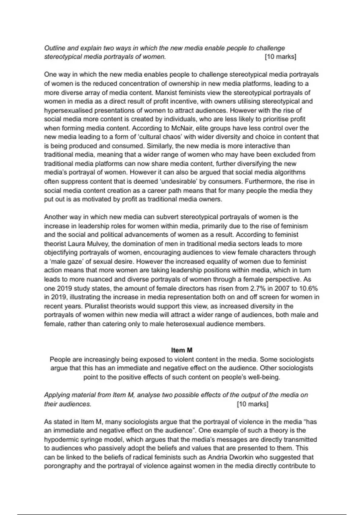 stereotypical media portrayals of women. [10 marks]
