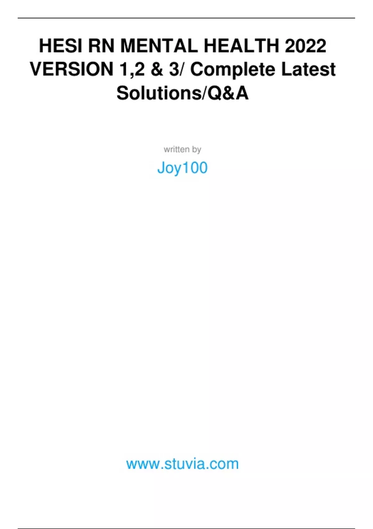 HESI RN MENTAL HEALTH 2022 VERSION 1 2 3 COMLETE LATEST
