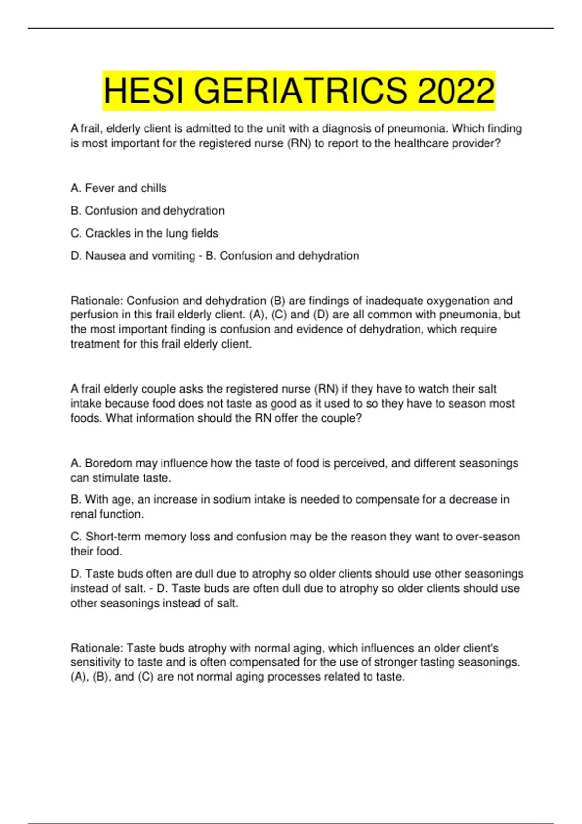 HESI GERIATRICS 2022.HESI GERIATRICS 2022.