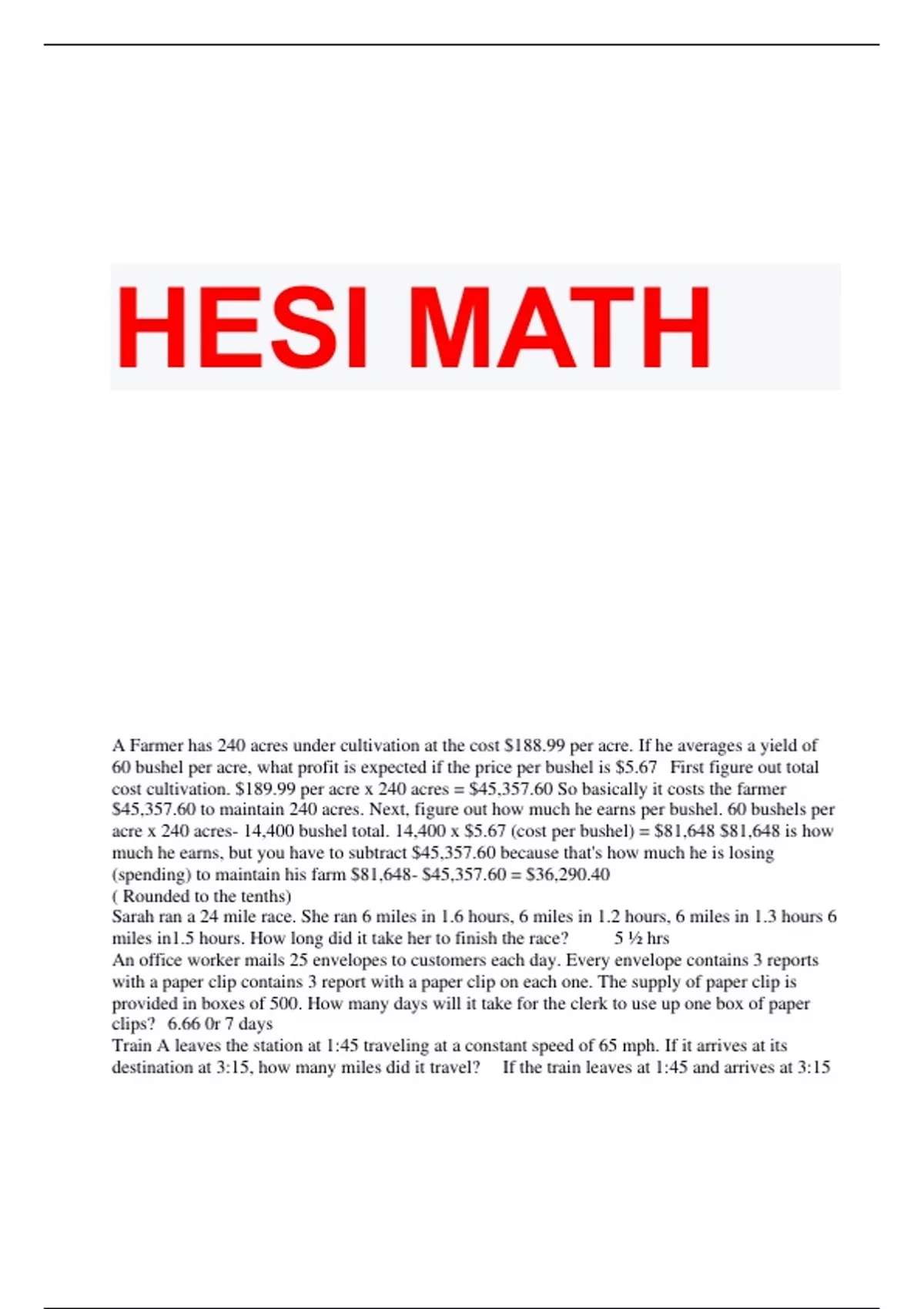 HESI MATH
