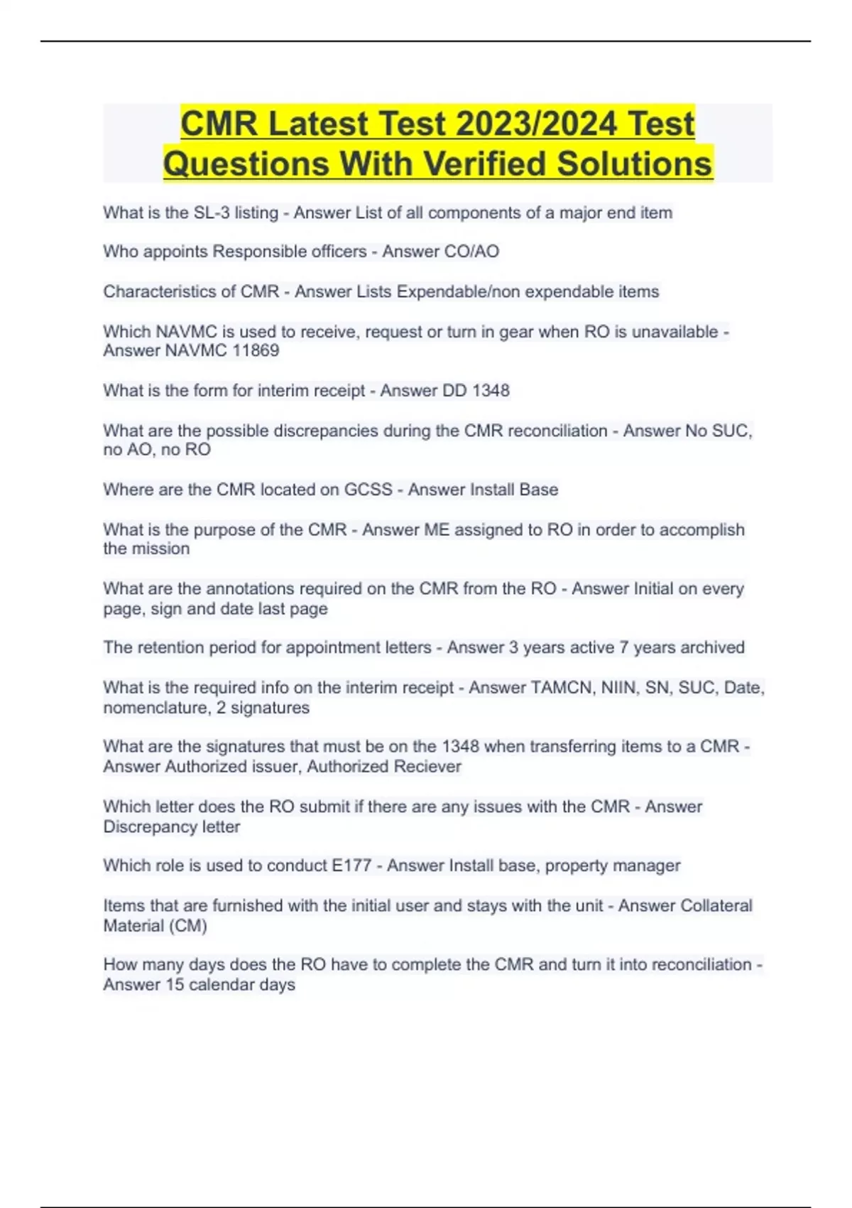 CMR Latest Test 2023/2024 Test Questions With Verified Solutions