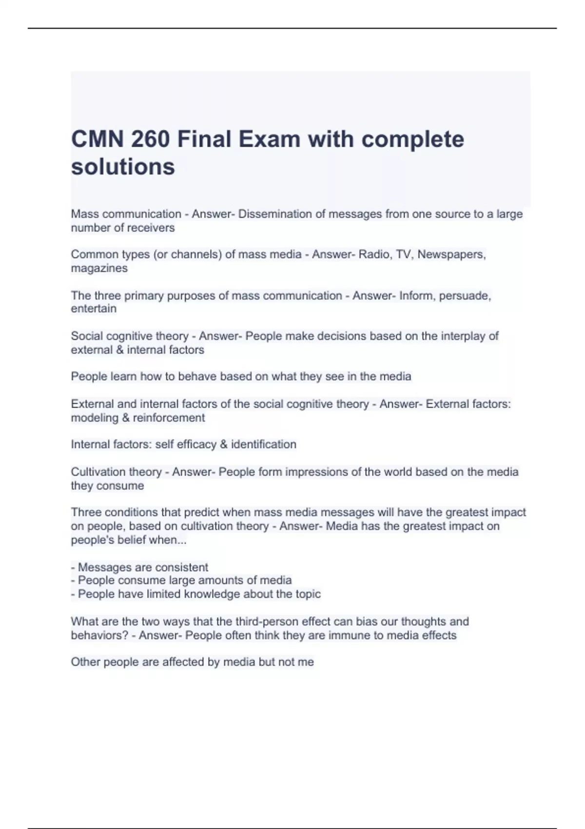 cmn 260 final exam with complete solutions