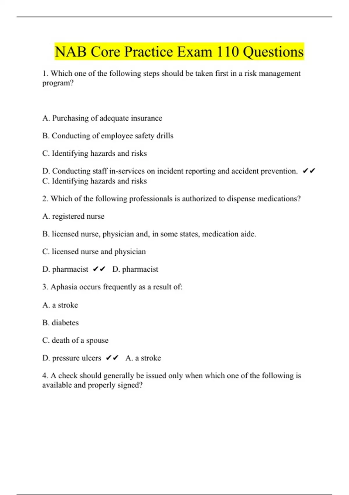 NAB Core Practice Exam 110 Questions