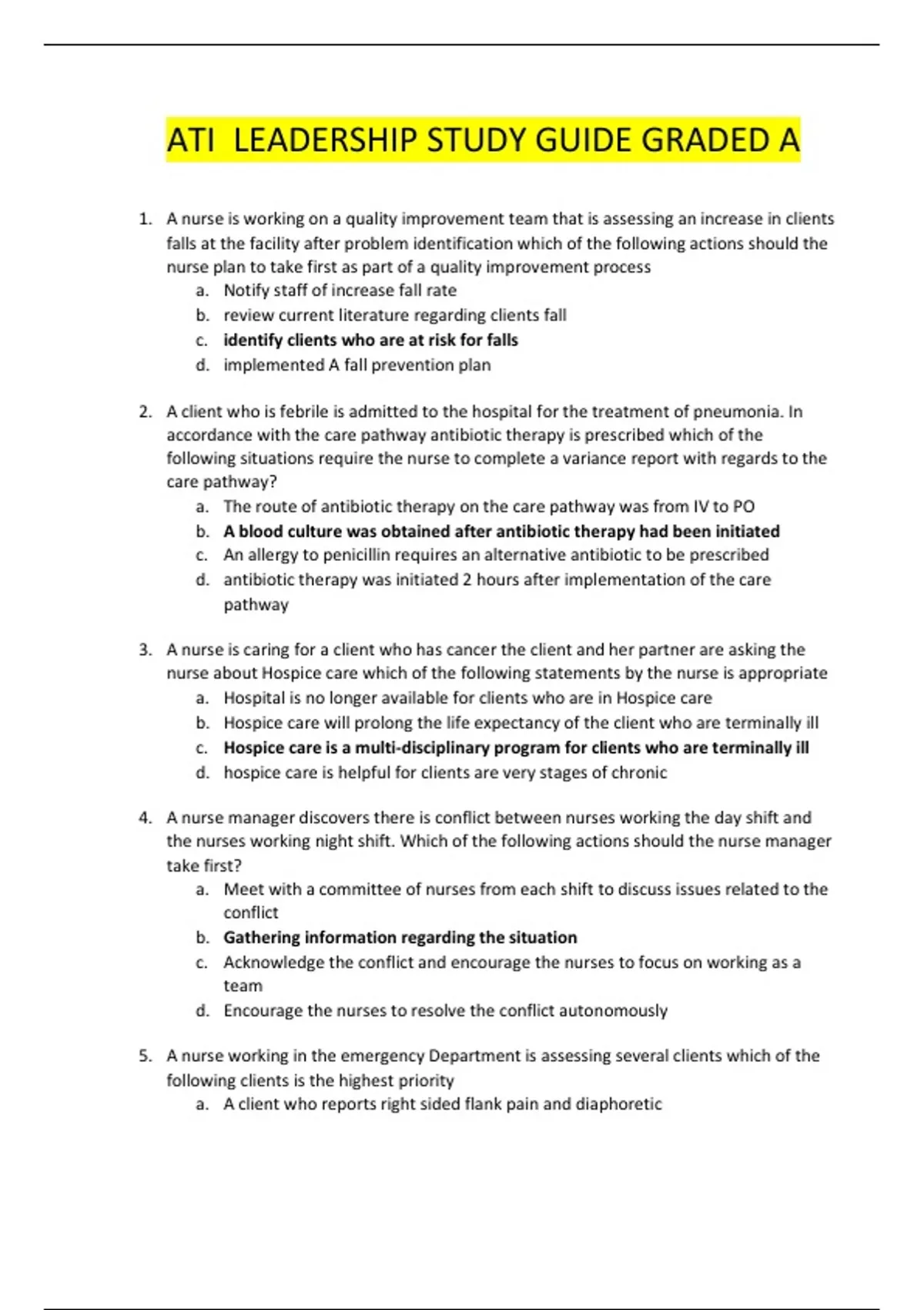 ATI LEADERSHIP STUDY GUIDE GRADED A.ATI LEADERSHIP STUDY GUIDE GRADED A.