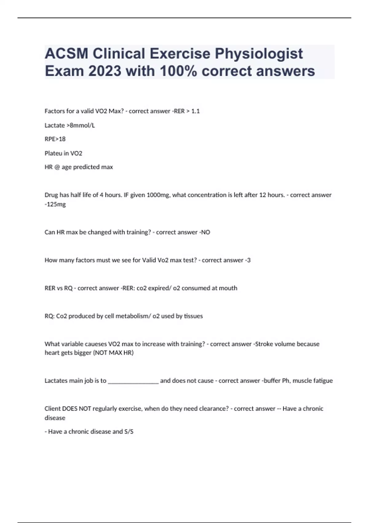 ACSM EP-C Exam 2023 with 100% correct answers
