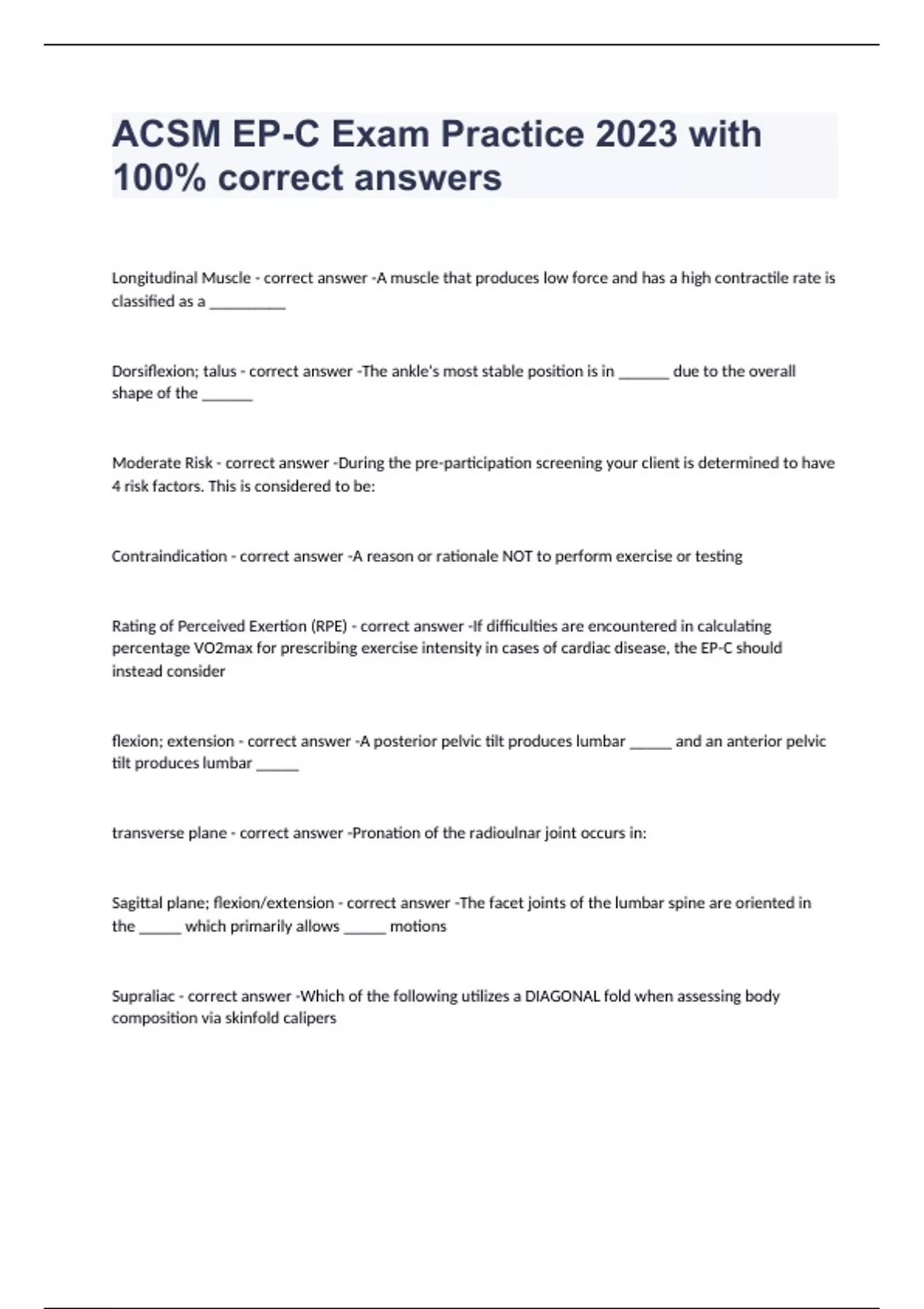 ACSM EP-C Exam Practice 2023 with 100% correct answers
