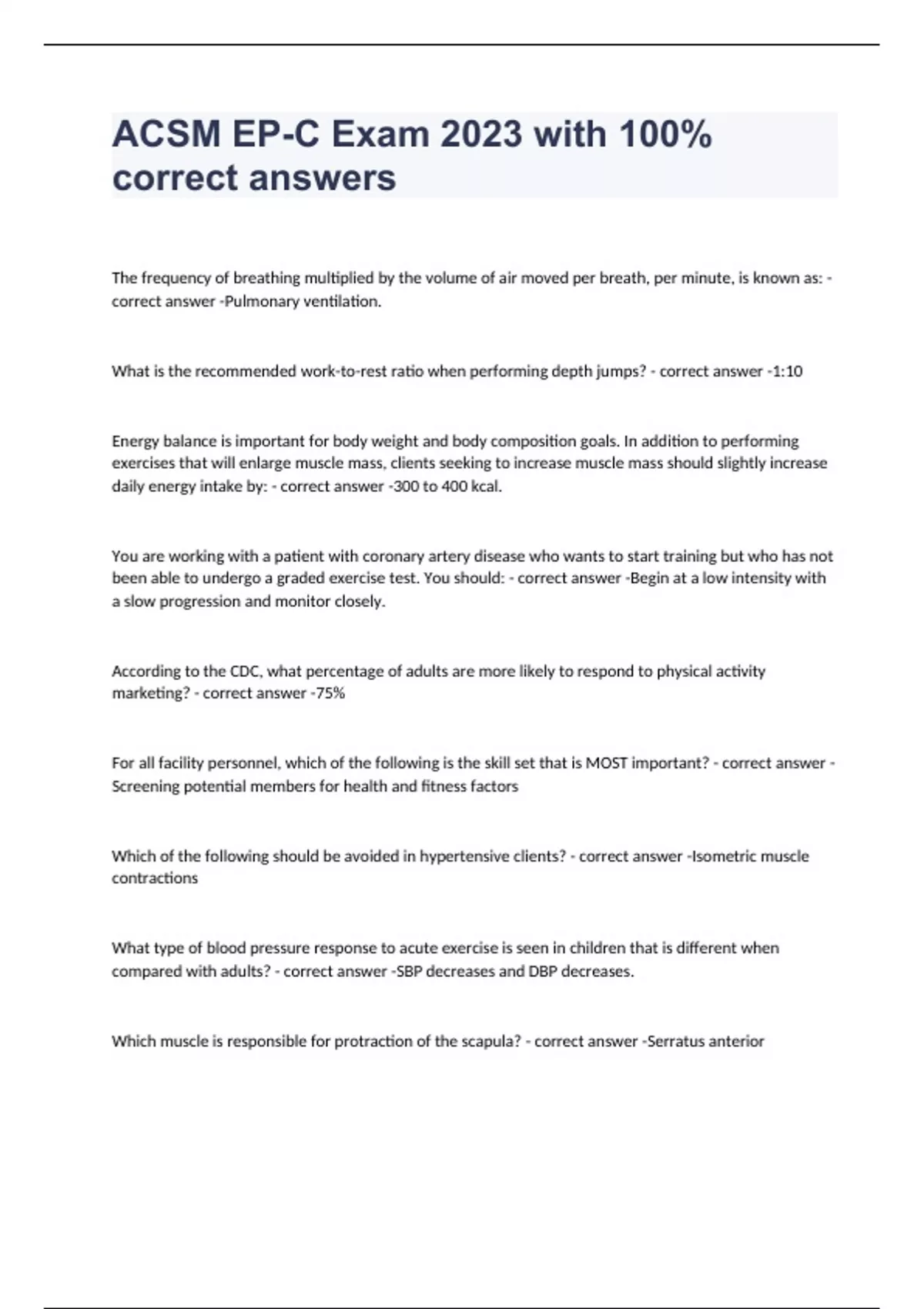 ACSM EP-C Exam Practice 2023 with 100% correct answers