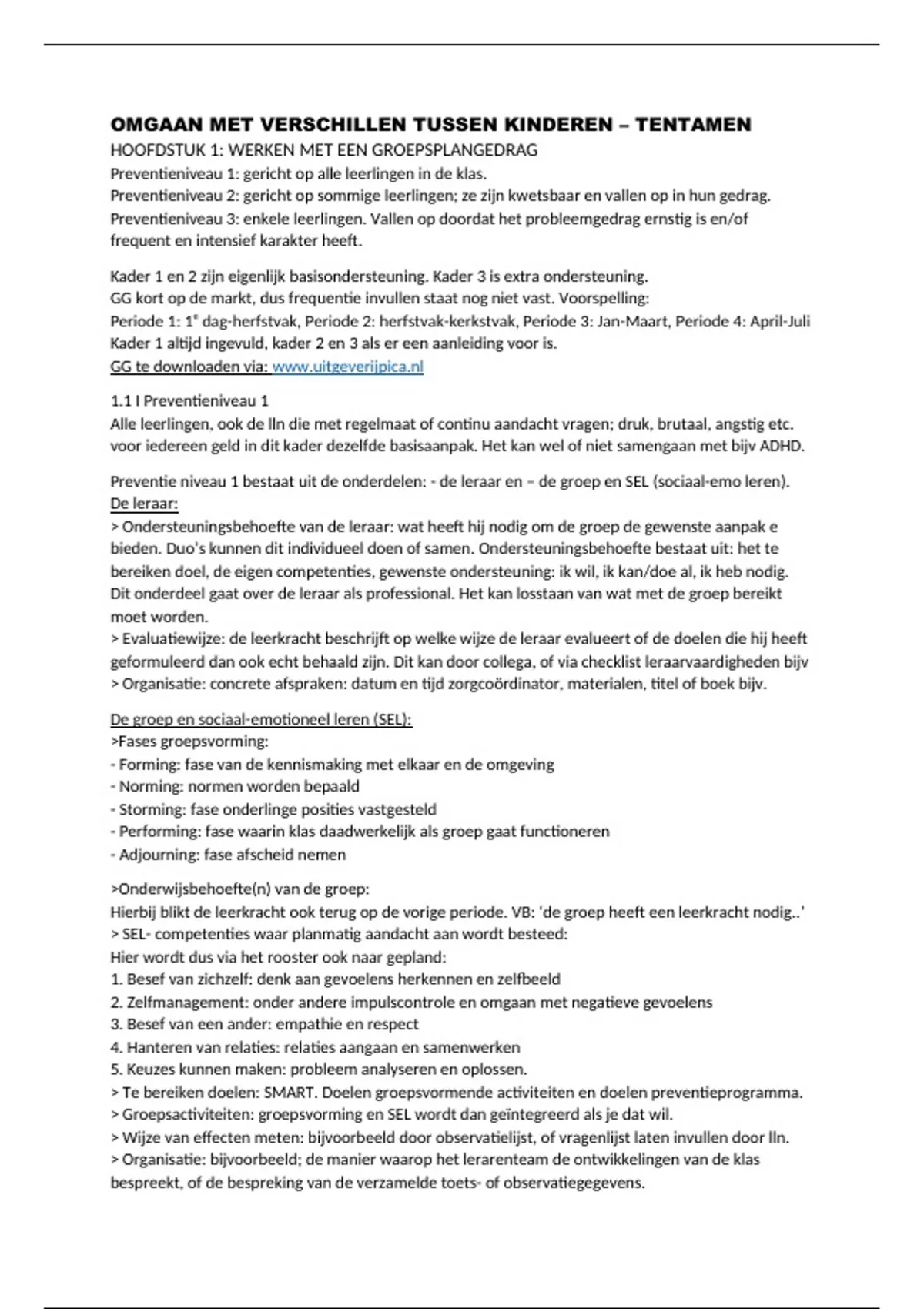OMGAAN MET VERSCHILLEN TUSSEN KINDEREN – TENTAMEN