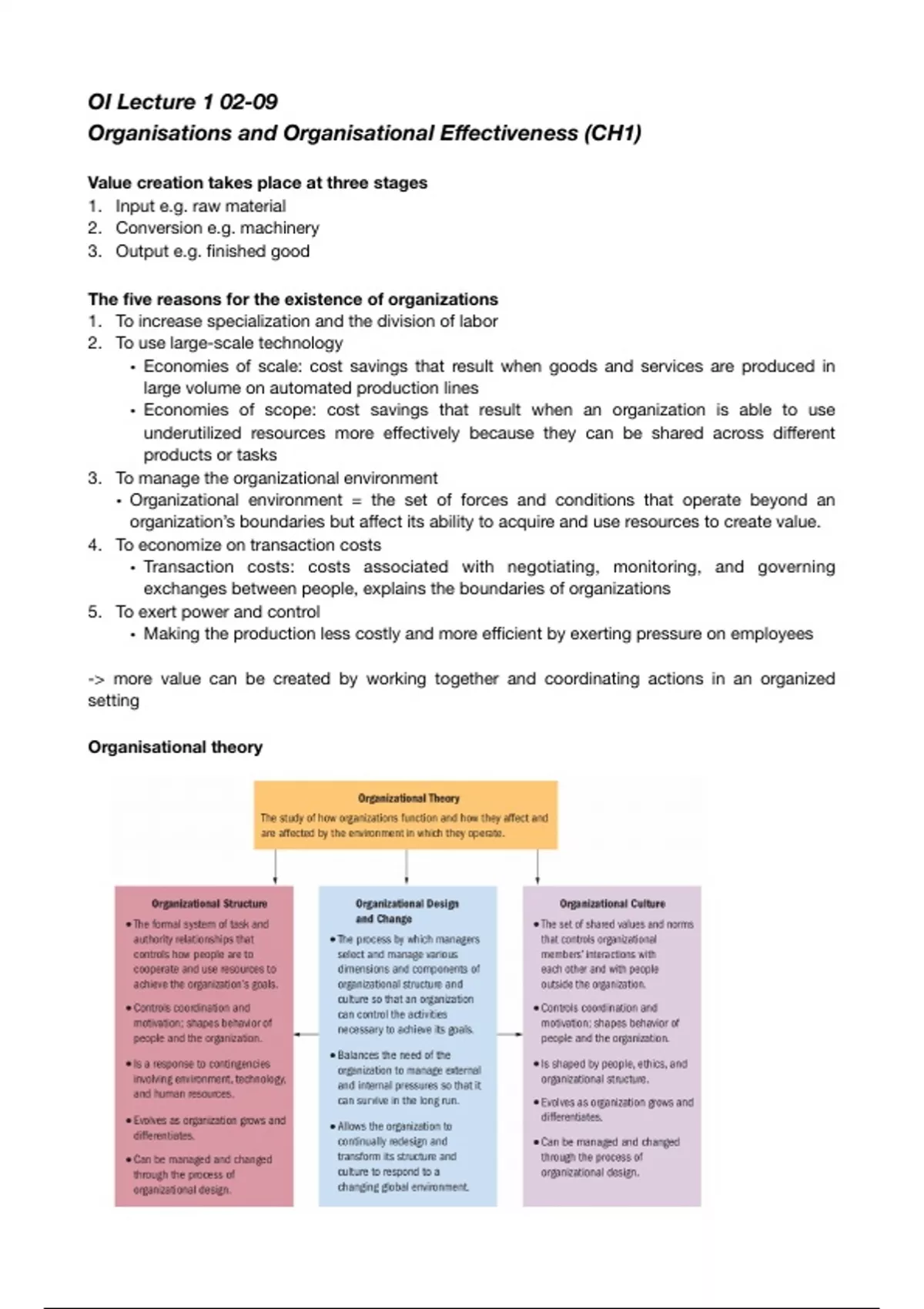 A summary of the first 6 lectures of Organisation & Innovation!