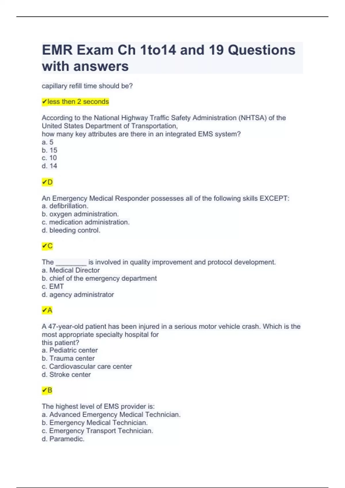 EMR Exam Ch 1to14 and 19 Questions with answers