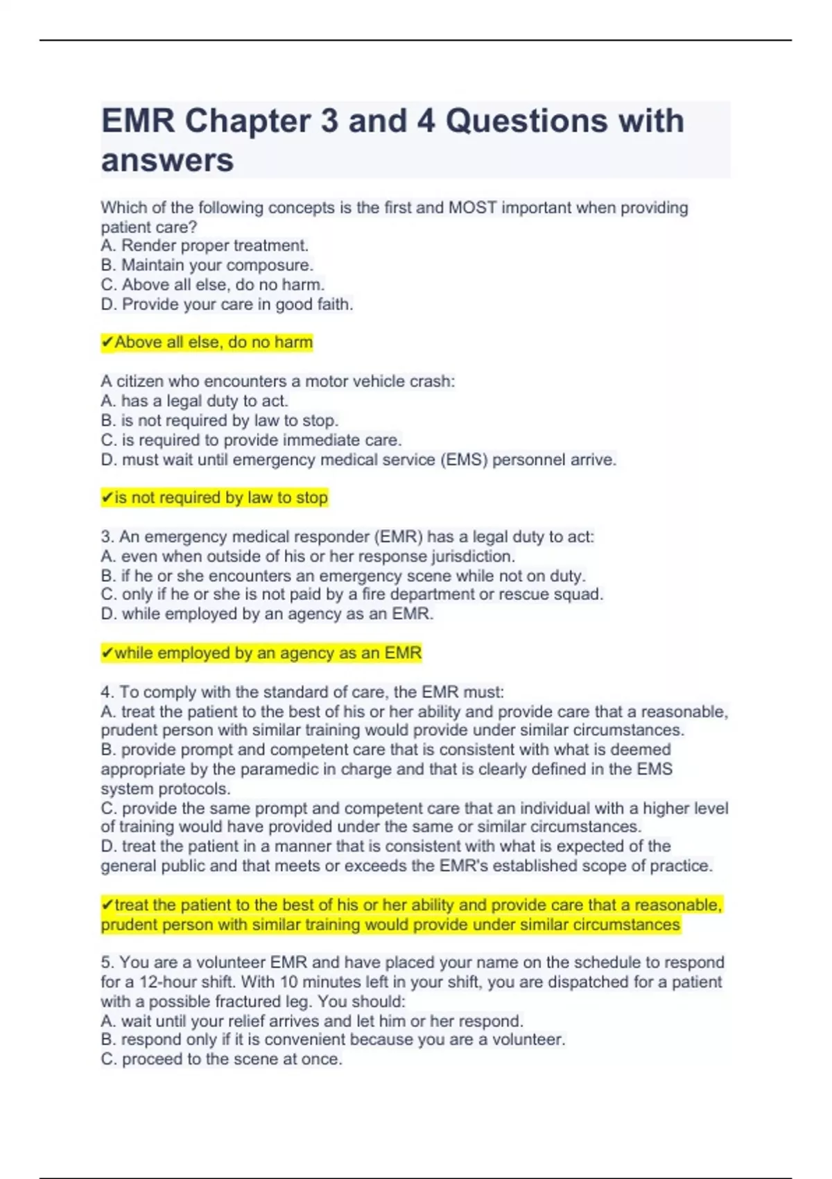 EMR Chapter 3 and 4 Questions with answers