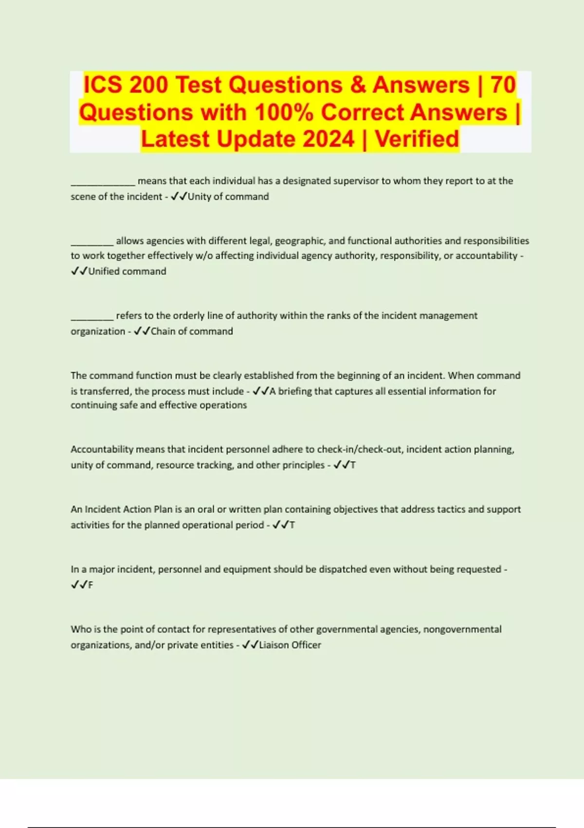 ICS 200 Test Questions & Answers | 70 Questions with 100% Correct Answers | Latest Update 2024 | Verified