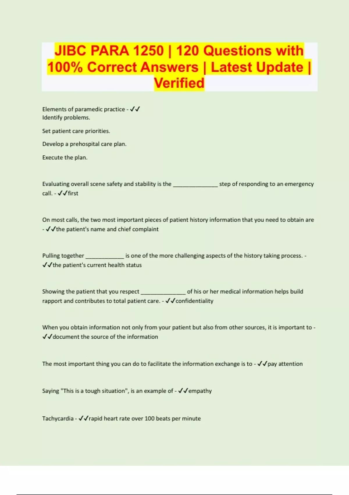 JIBC PARA 1250 | 120 Questions with 100% Correct Answers | Latest Update | Verified