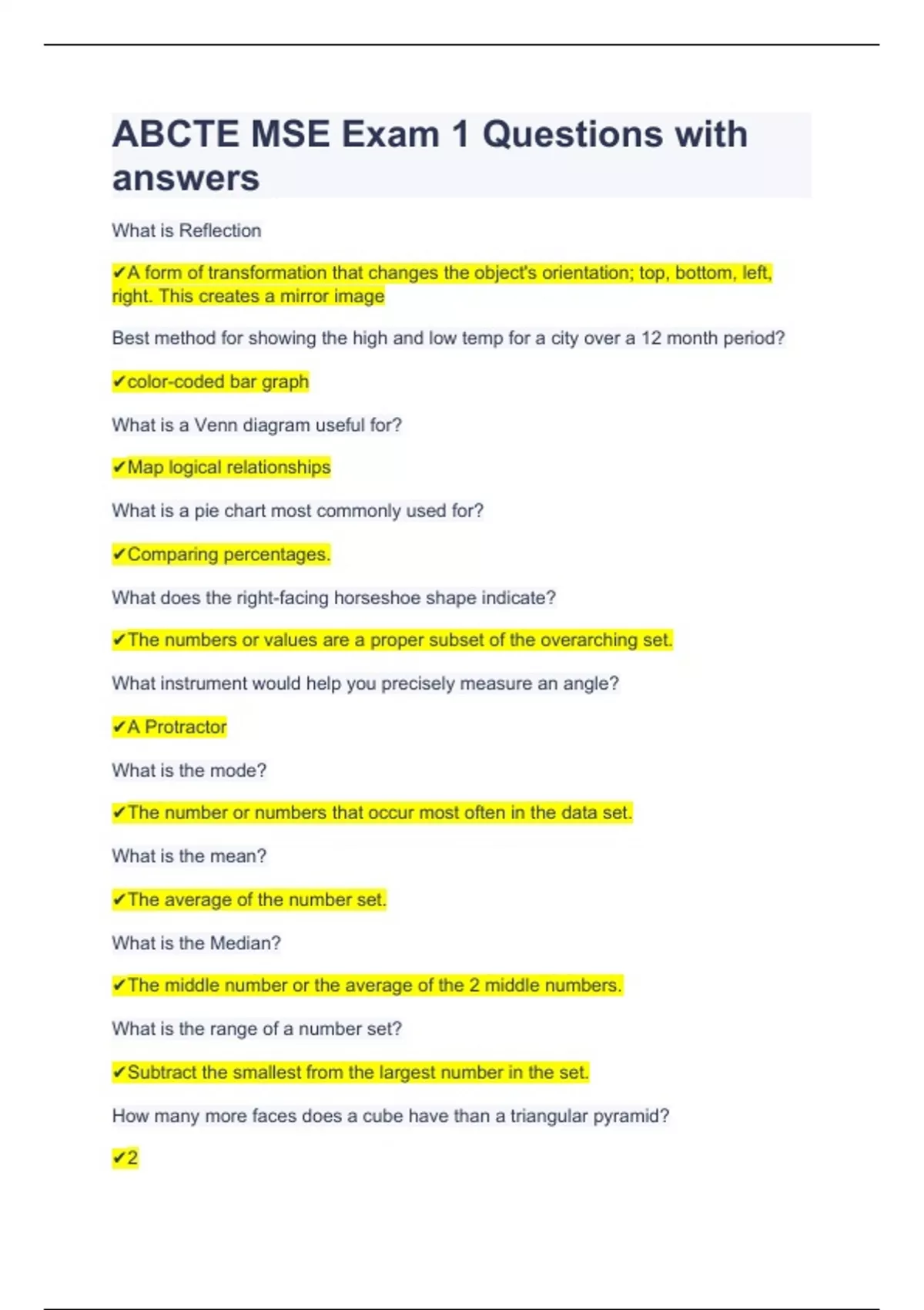 ABCTE MSE Exam 1 Questions with answers