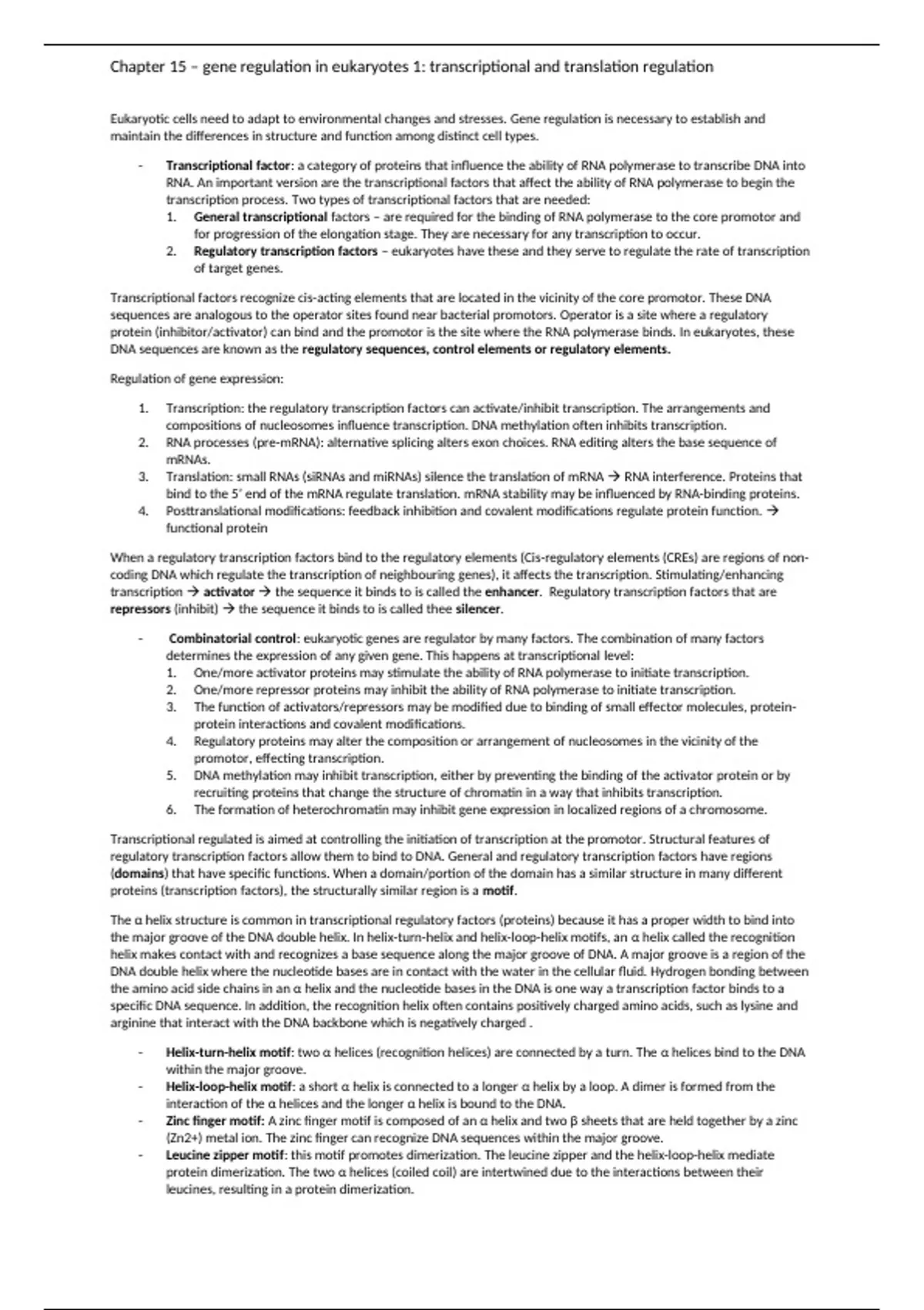 , Chapter 15 – gene regulation in eukaryotes 1: transcriptional and translation regulation
