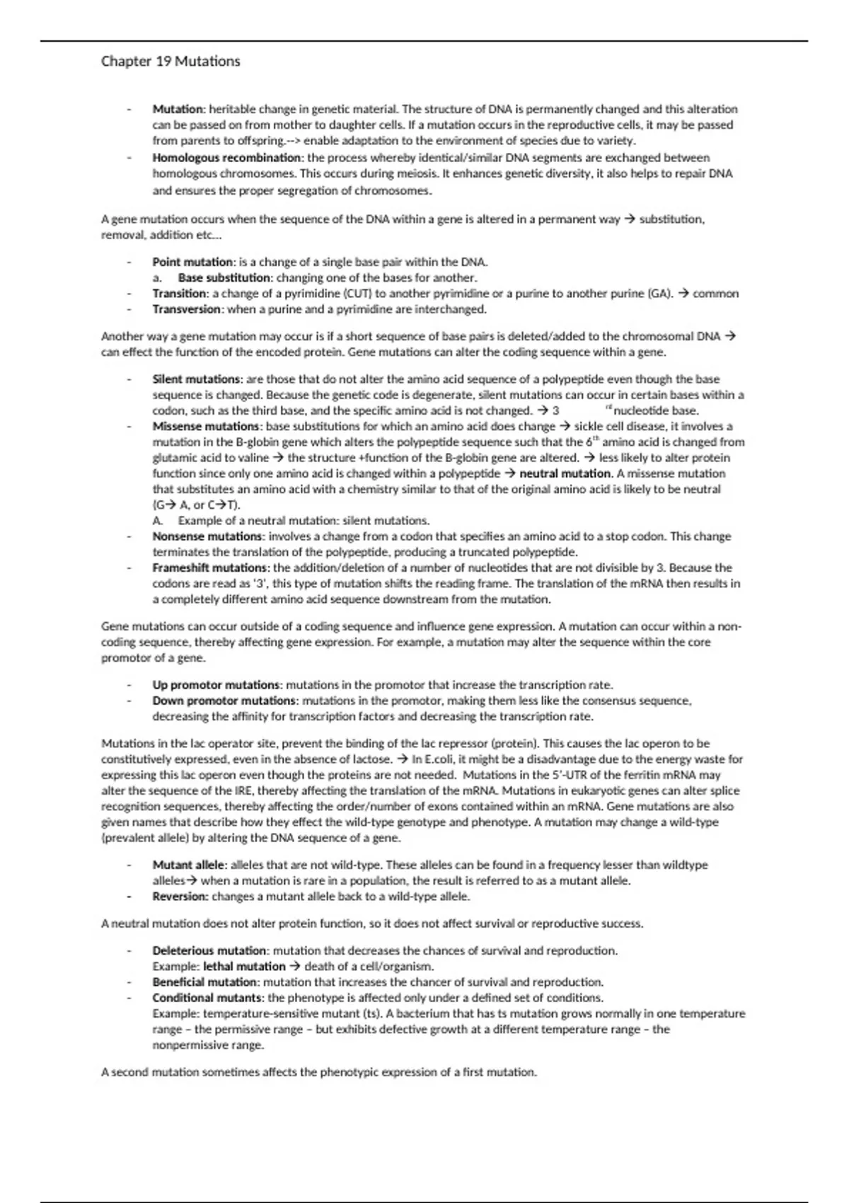 gamete participates in fertilization, all cells of the resulting offspring will contain the mutation. The mutation will