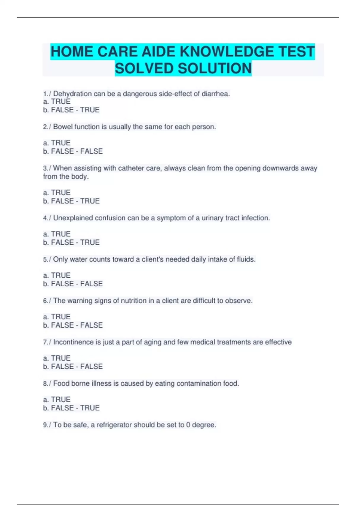 HOME CARE AIDE KNOWLEDGE TEST QUESTIONS WITH COMPLETE SOLUTIONS.