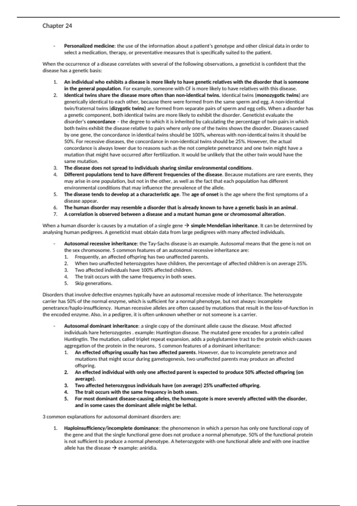 Genetics summary chapter 25 VU amsterdam