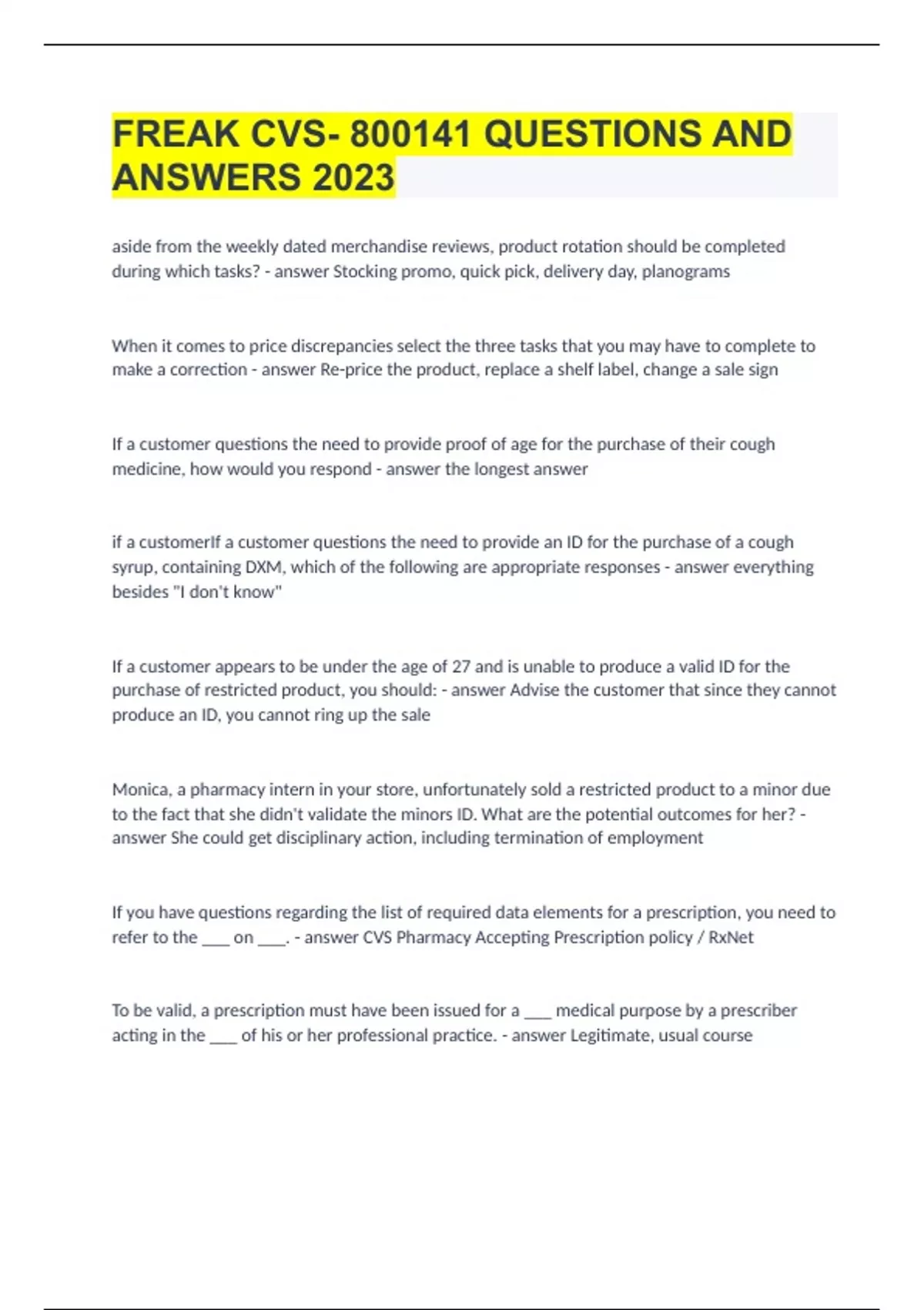 FREAK CVS- 800141 QUESTIONS AND ANSWERS 2023|GUARANTEED SUCCESS