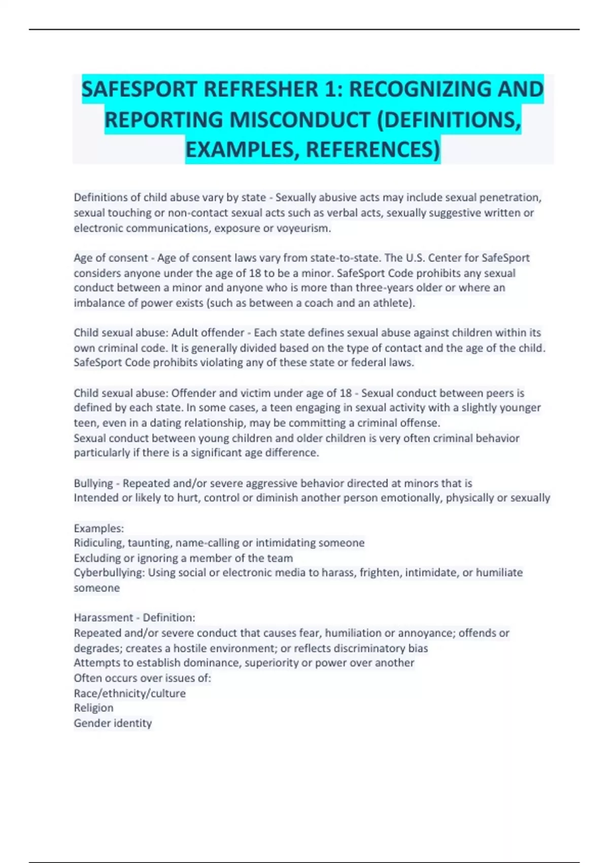 SAFESPORT REFRESHER 1 RECOGNIZING AND REPORTING MISCONDUCT (DEFINITIONS, EXAMPLES, REFERENCES)