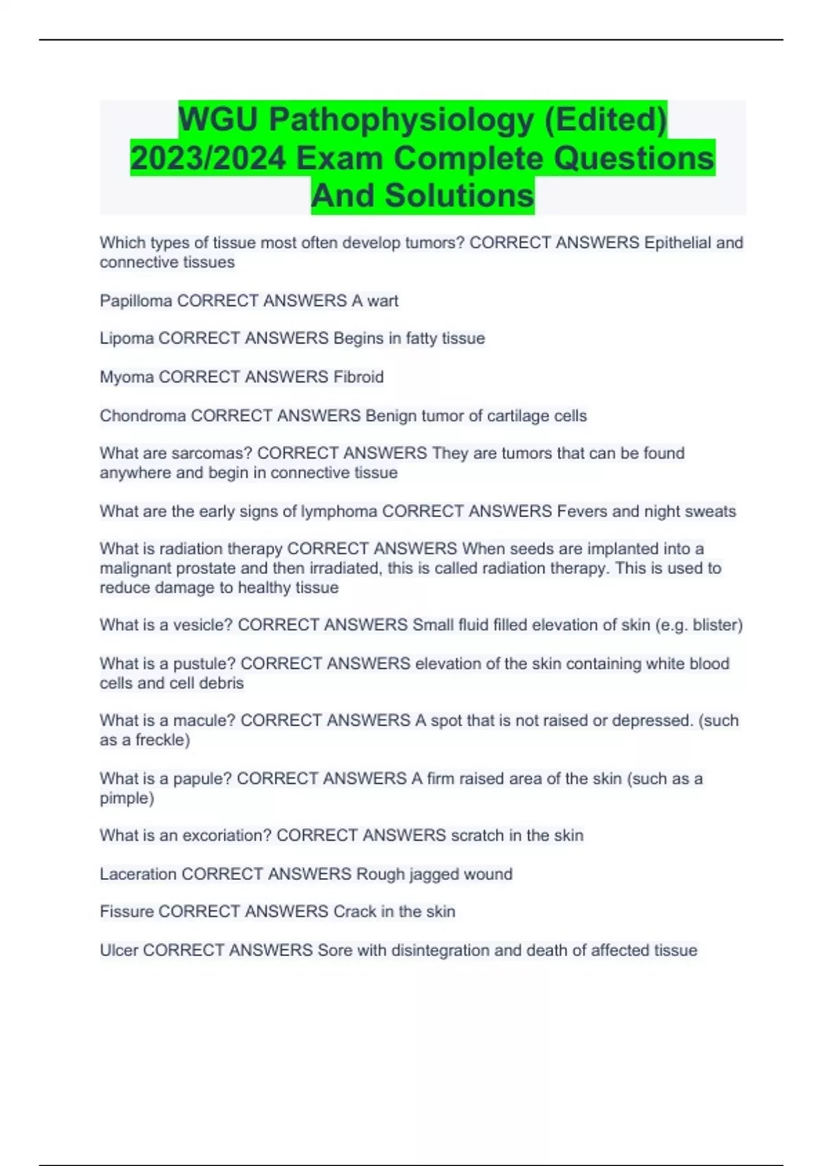 WGU Pathophysiology (Edited) 2023/2024 Exam Complete Questions And Solutions