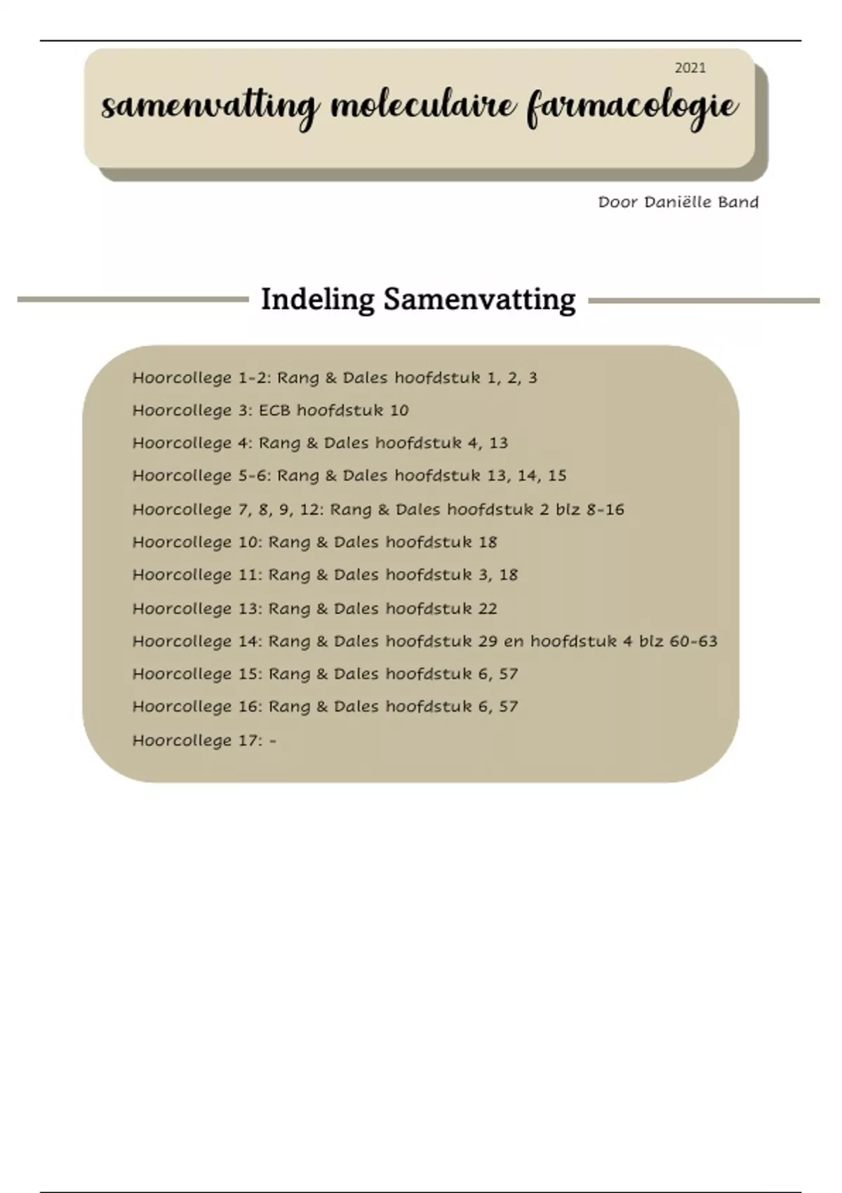 Hoorcollege 1-2: Rang & Dales hoofdstuk 1, 2, 3