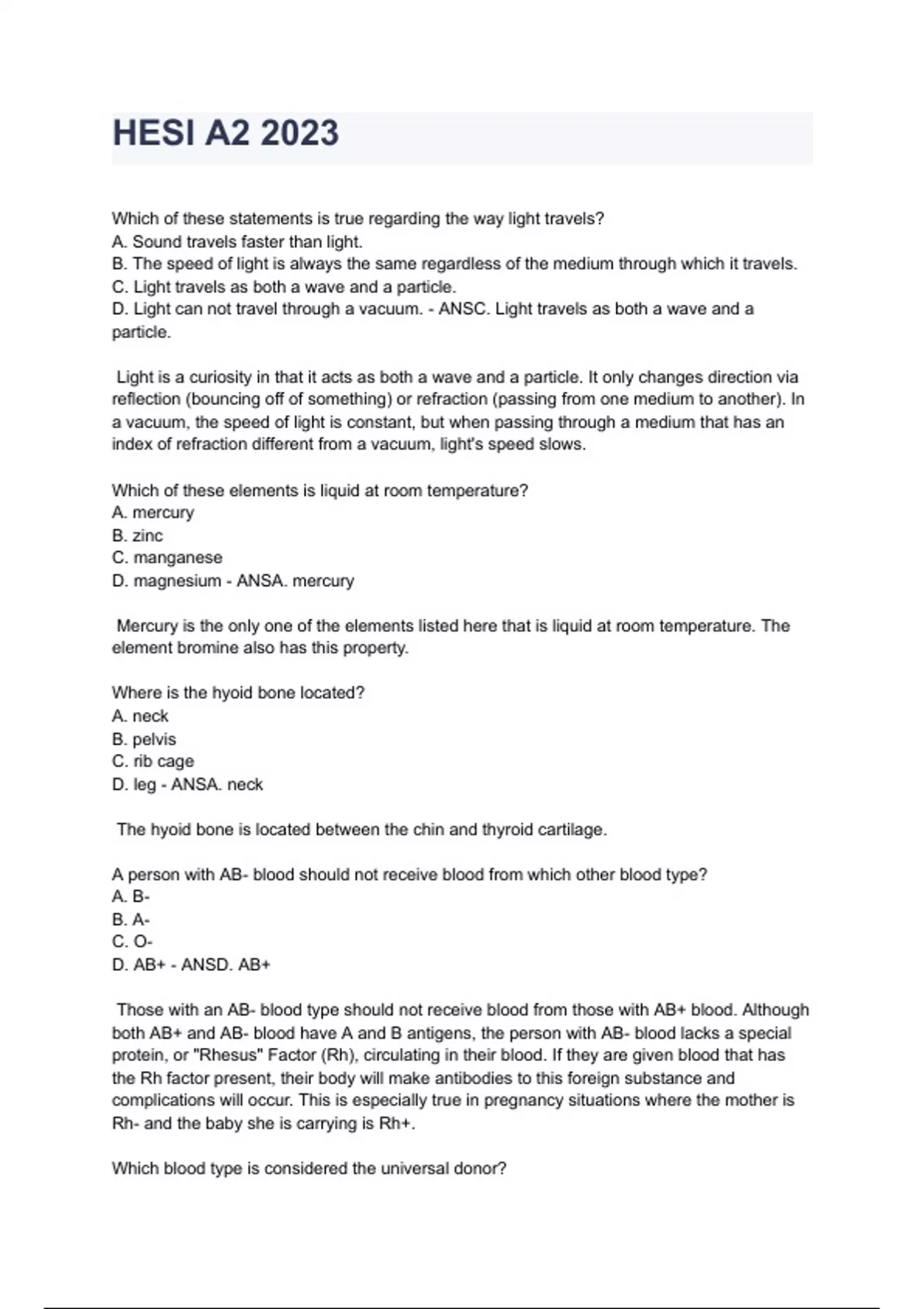 D. Light can not travel through a vacuum. - ANSC. Light travels as both a wave and a