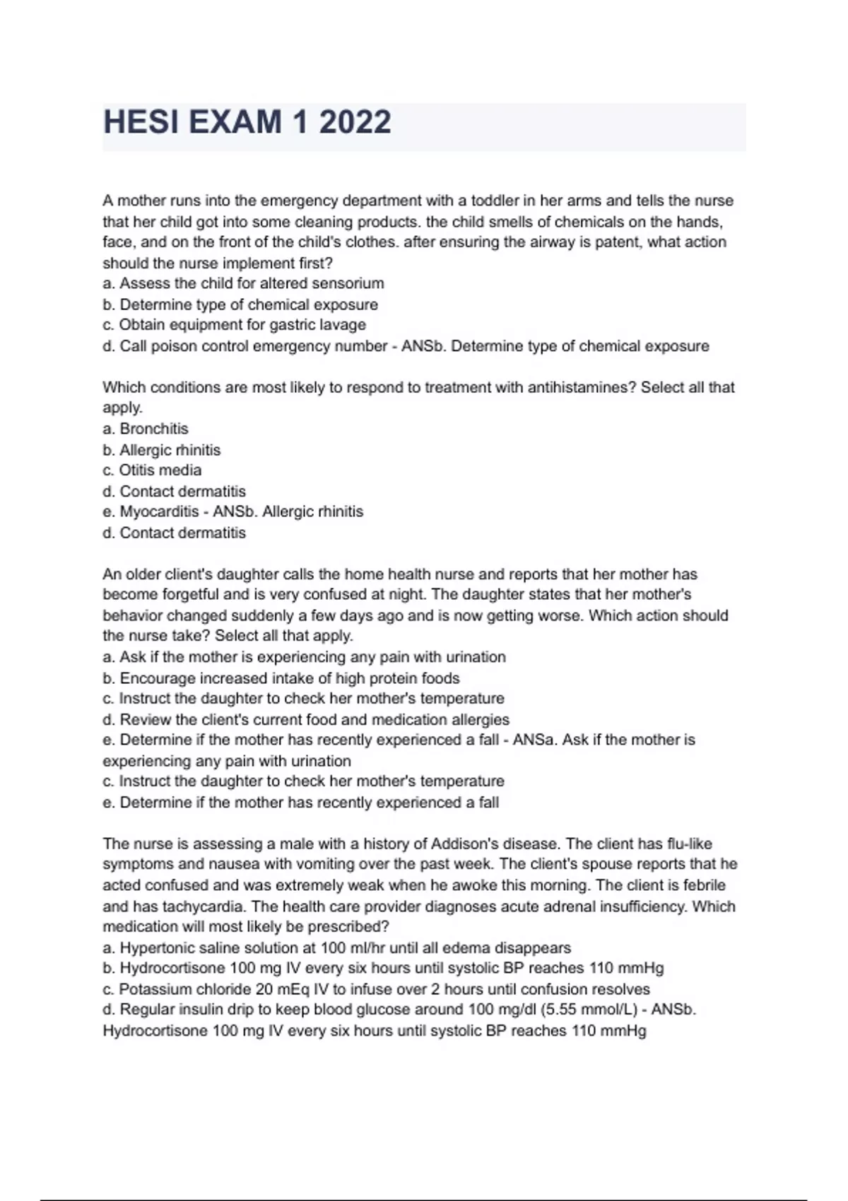 HESI EXAM 1 2022 graded A+